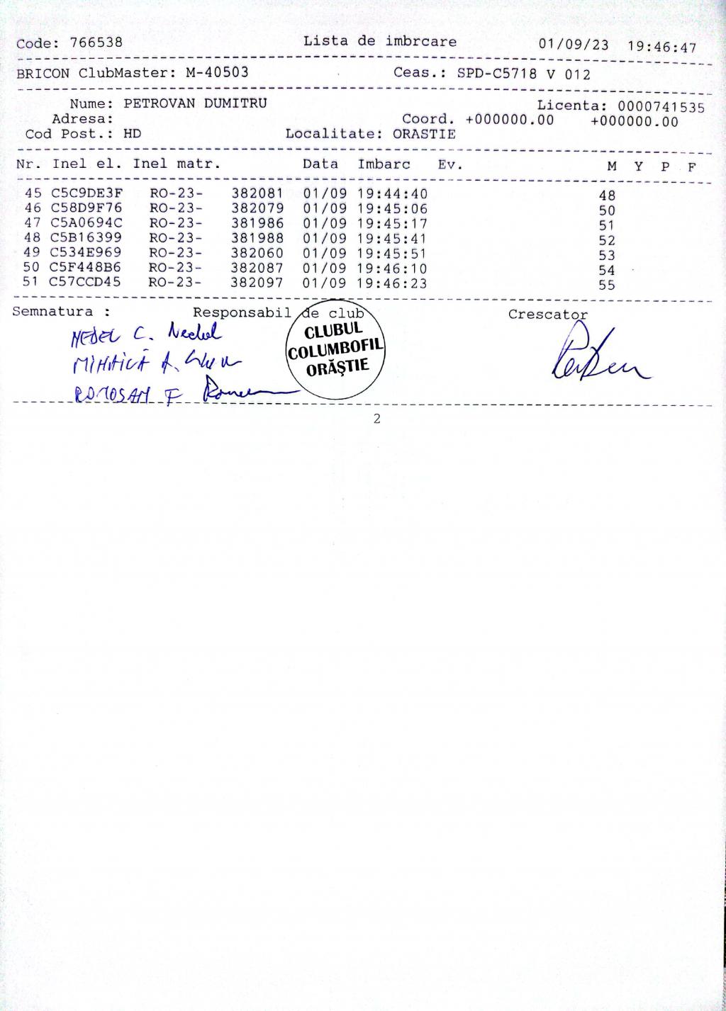 | 50 | Muntean Gheorghe | HD981 | TOP | Geoagiu |