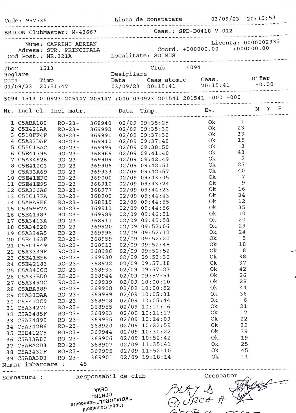 | 32 | Moga Petru Ciprian | HD294 | TOP | Deva |