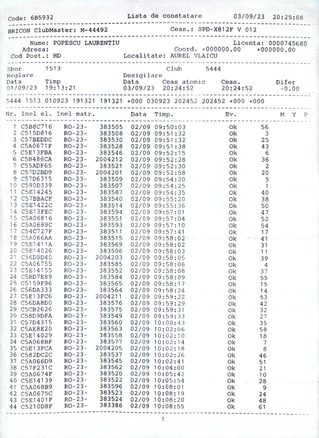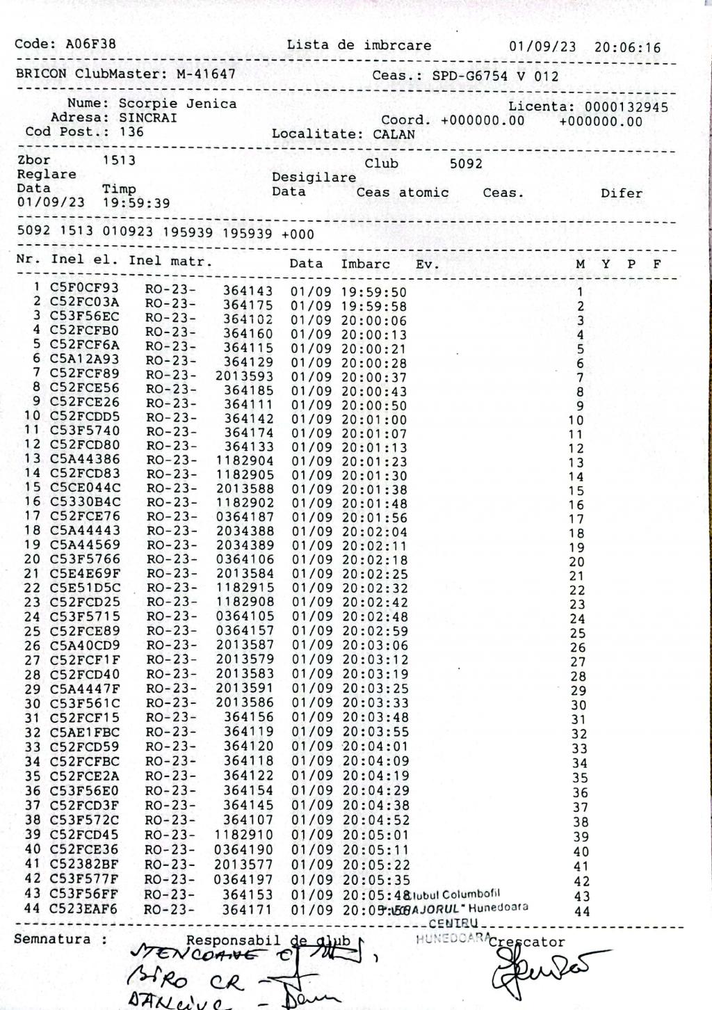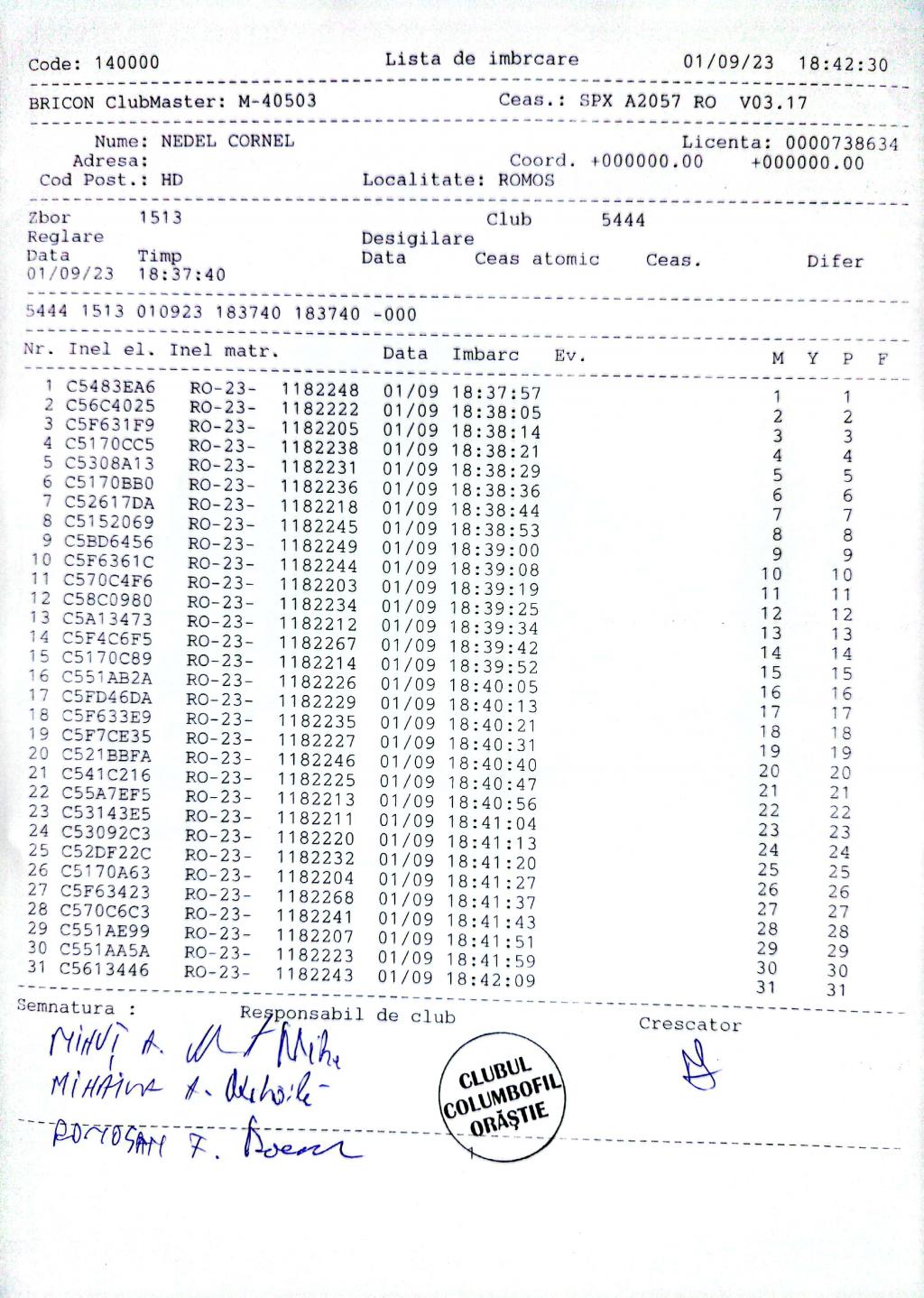 | 138 | Renghea Florin | HD912 | TOP | Simeria |
