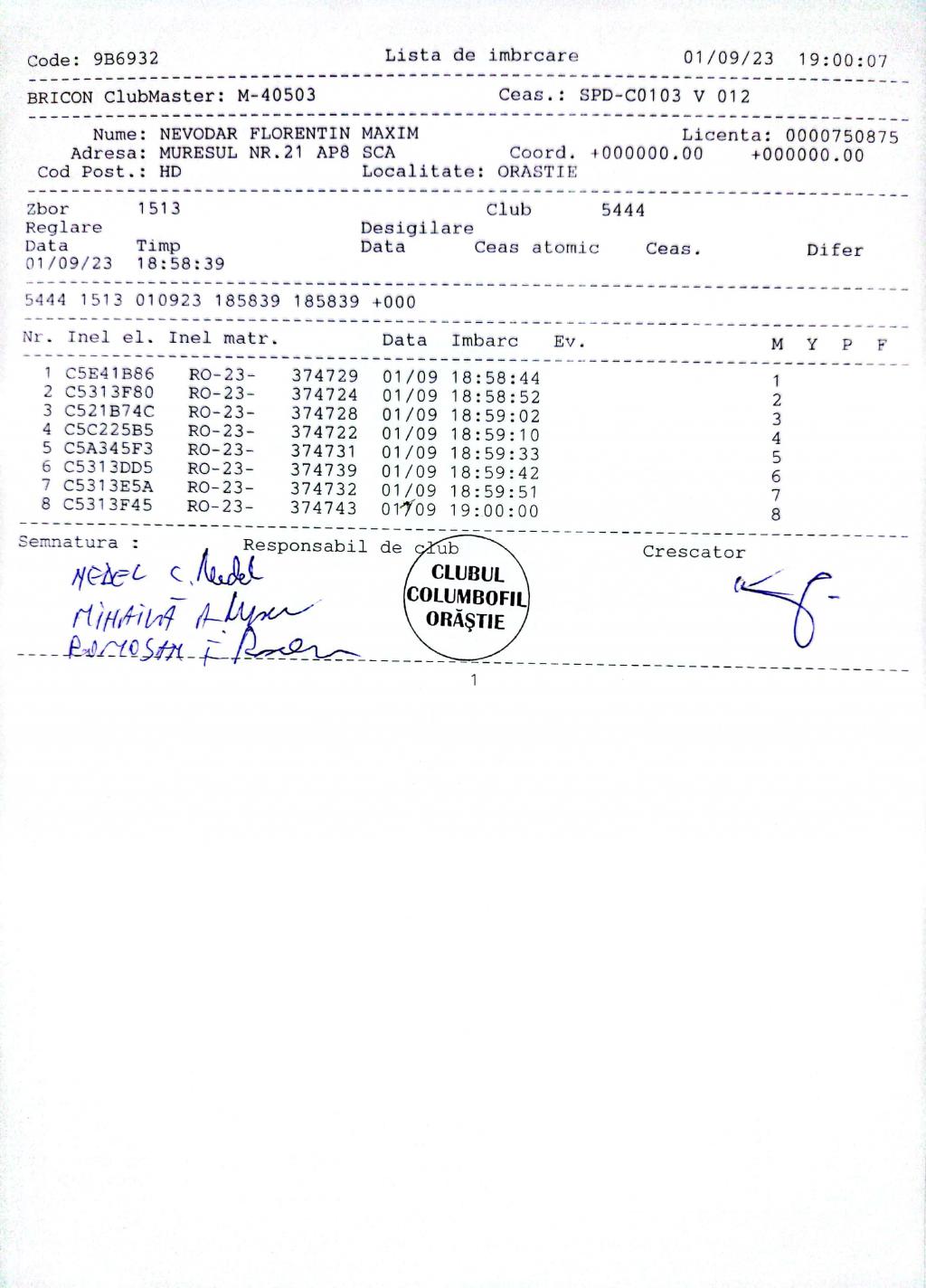 | 110 | Danco Nicolae | HD1345 | BRI | petrosani | [IMB P0] | [DES P0] |