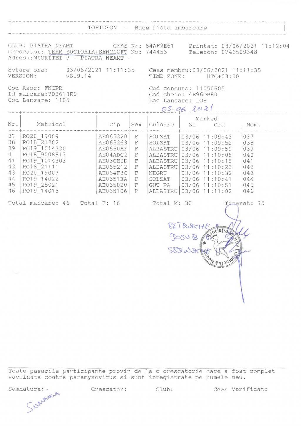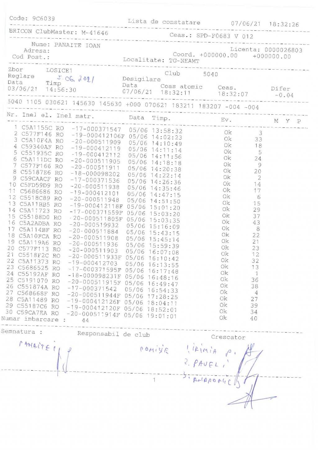 | 38 | Petrenchi Romeo | IS9071 | Iasi | [IMB P0] | [DES P0] |