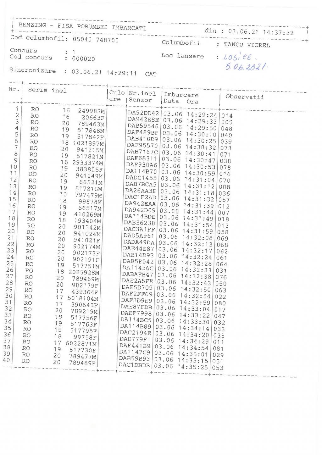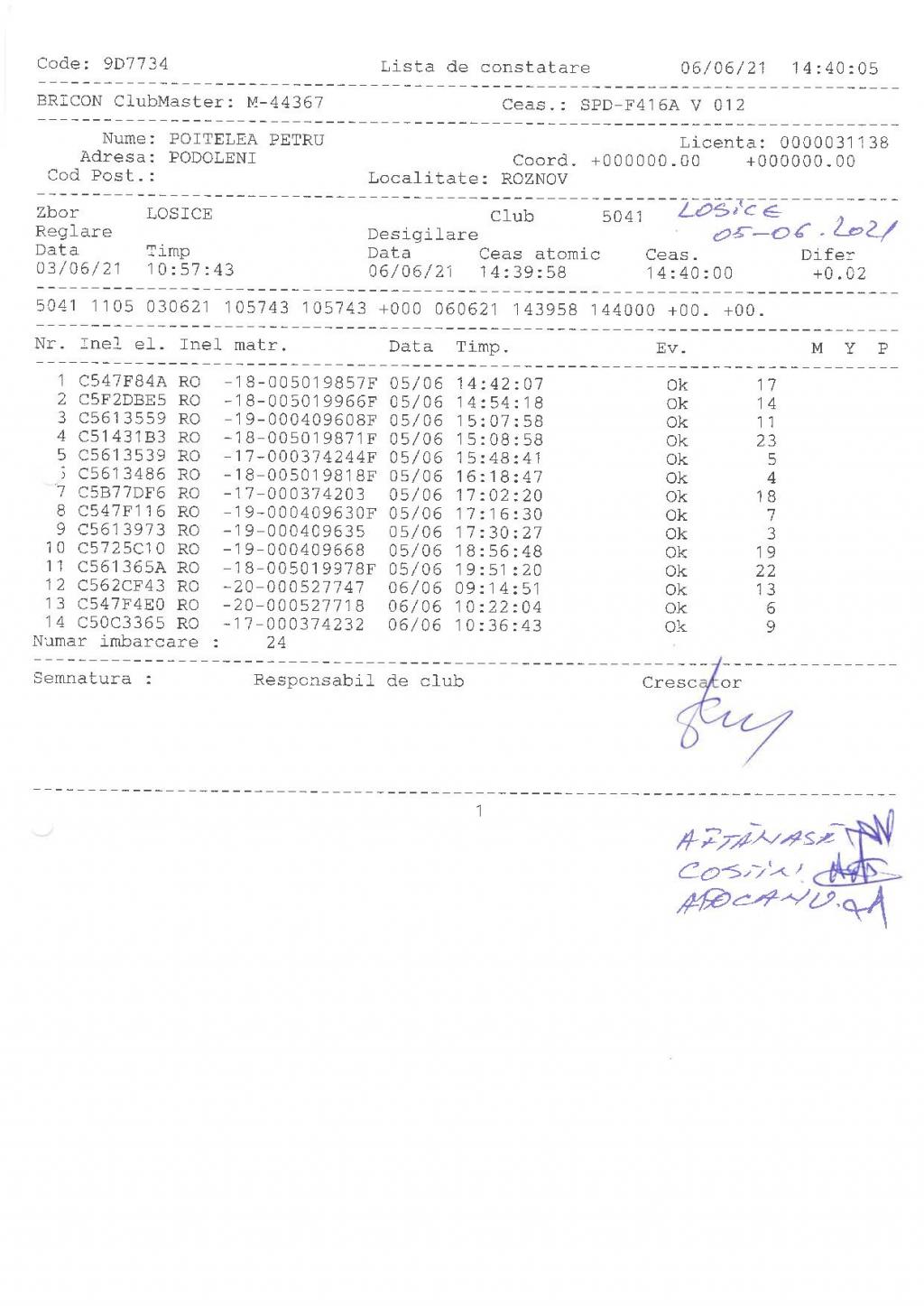 | 40 | Radeanu Sorin Gabriel | IS9415 | Iasi | [IMB P0] | |