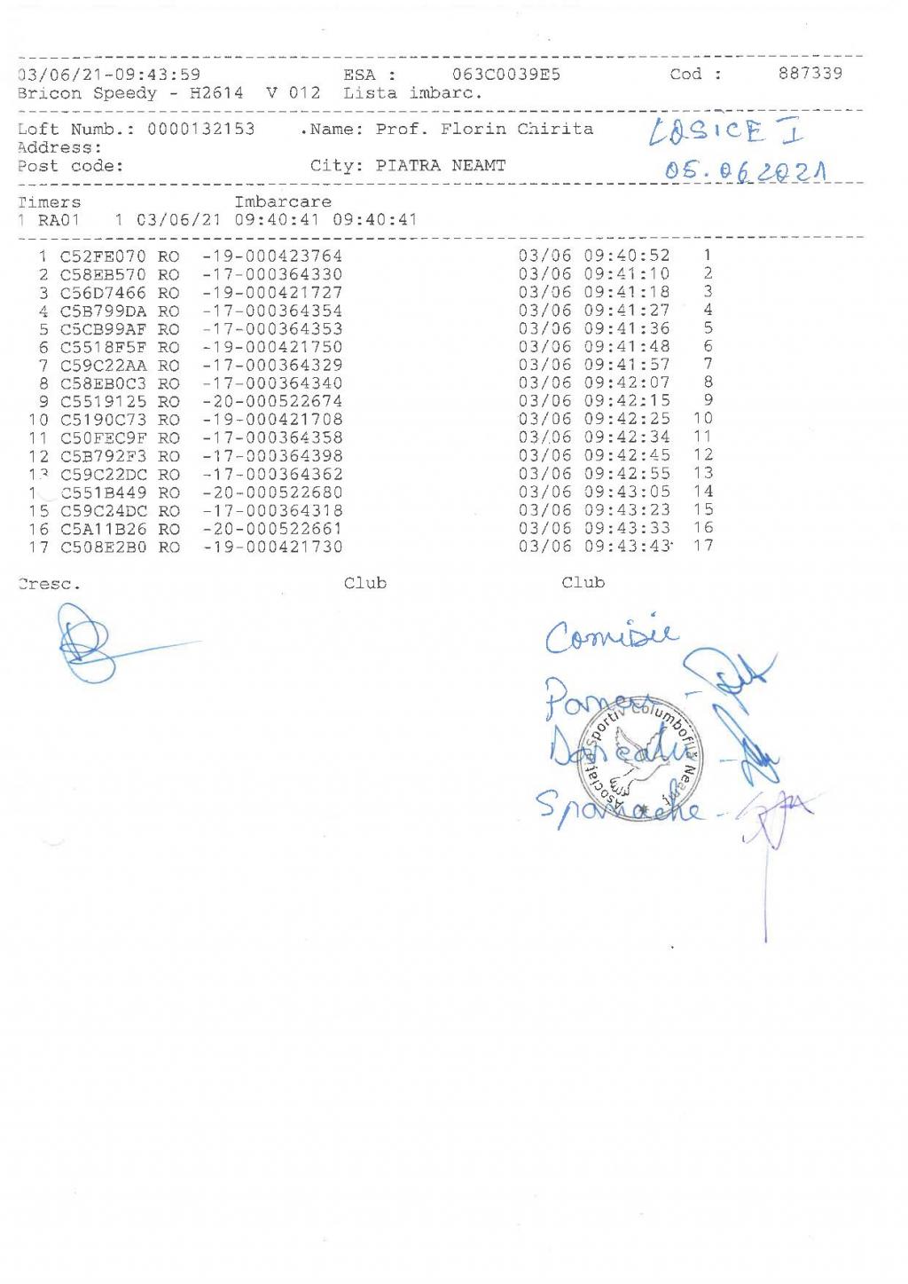| 43 | Senciuc Cornel | IS9379 | Iasi |
