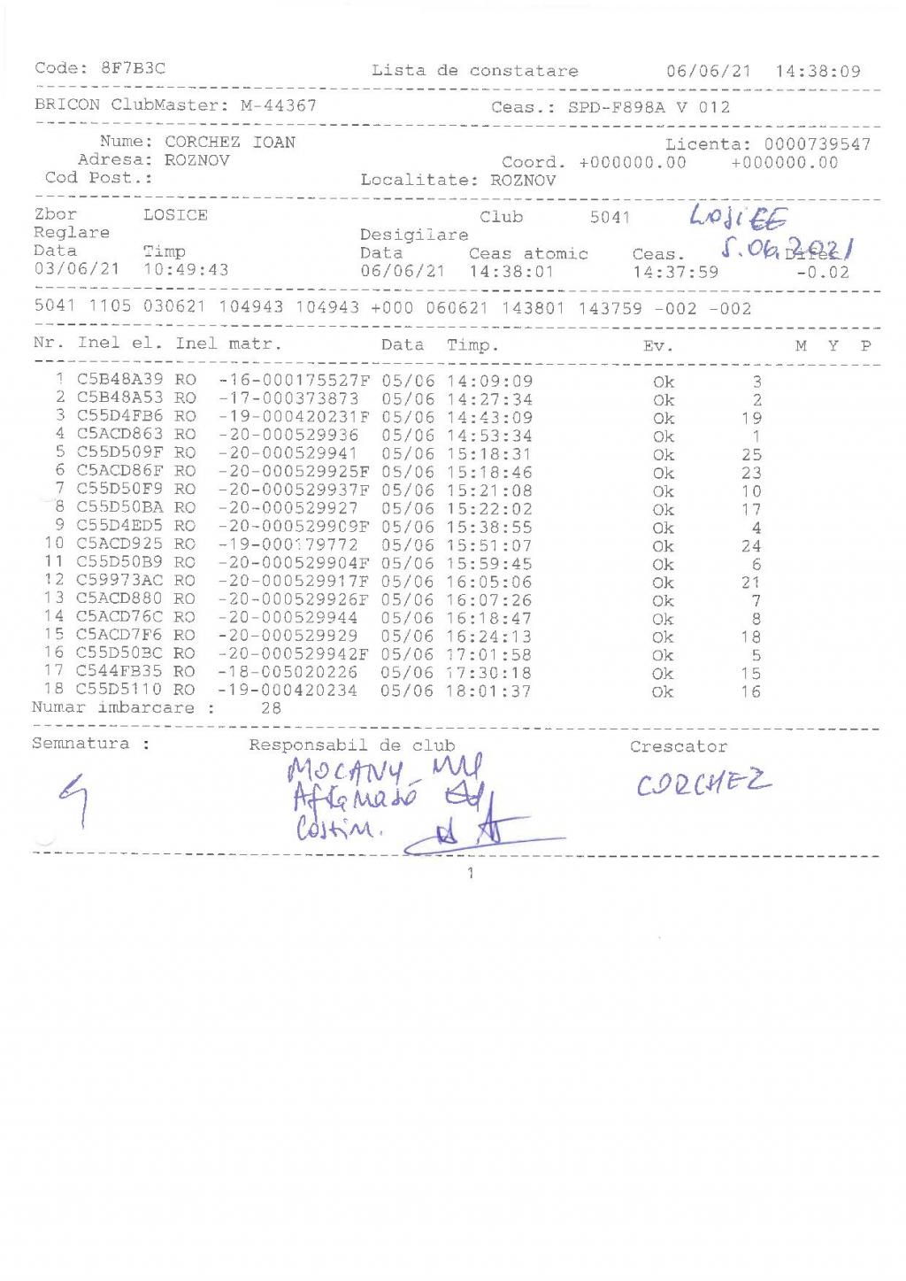| 8 | Chicet Valentin | IS9026 | Iasi |