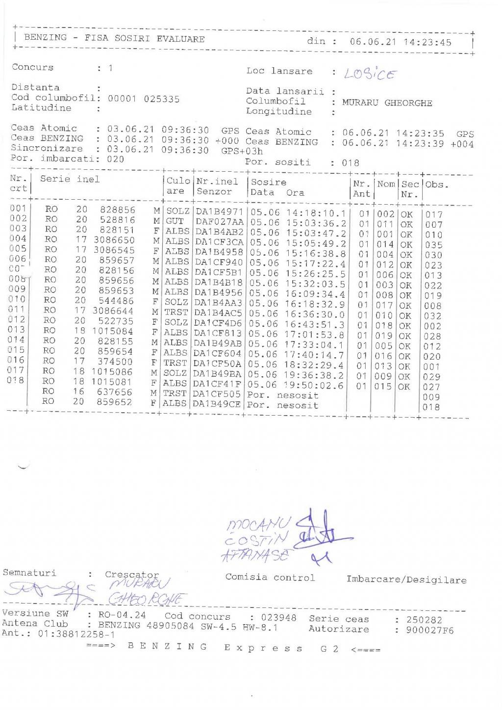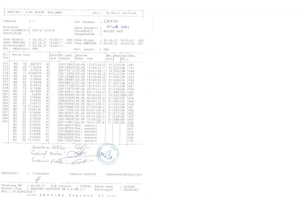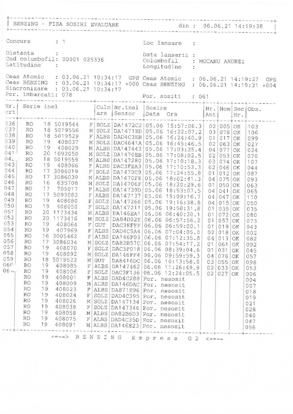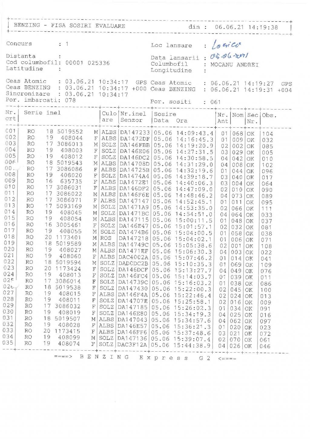 | 78 | Marian Grigoras | NT264 | P.neamt | [IMB P0] [IMB P1] | [DES P0] [DES P1] |