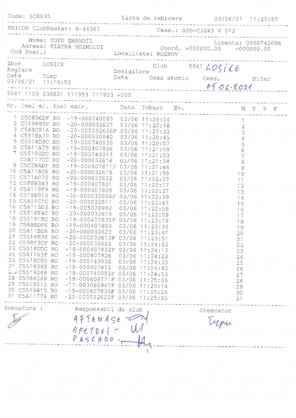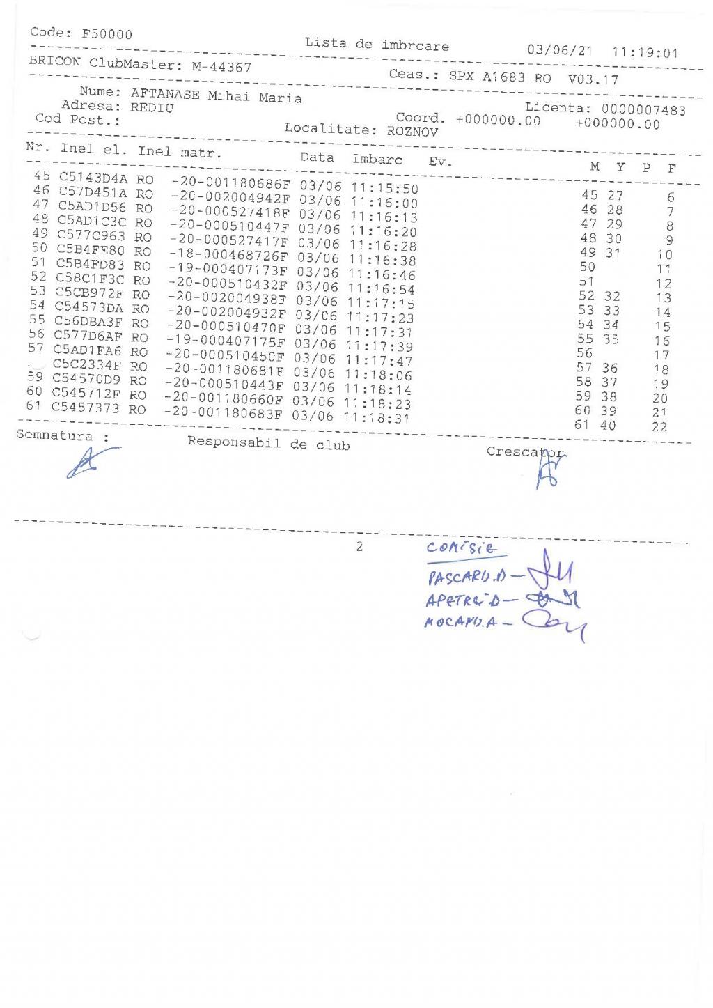 | ## | NUME | COD | CLUB/CENTRU IMBARCARE | FISA - IMBARCARE | FISA - DESIGILARE |