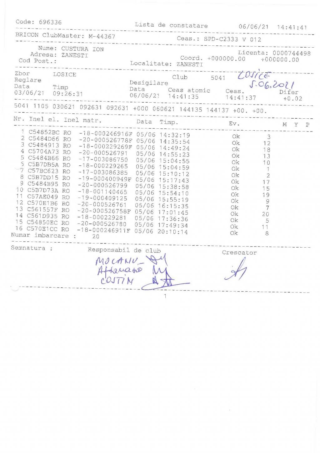 | 46 | Stoica Cristinel | IS9335 | Iasi |