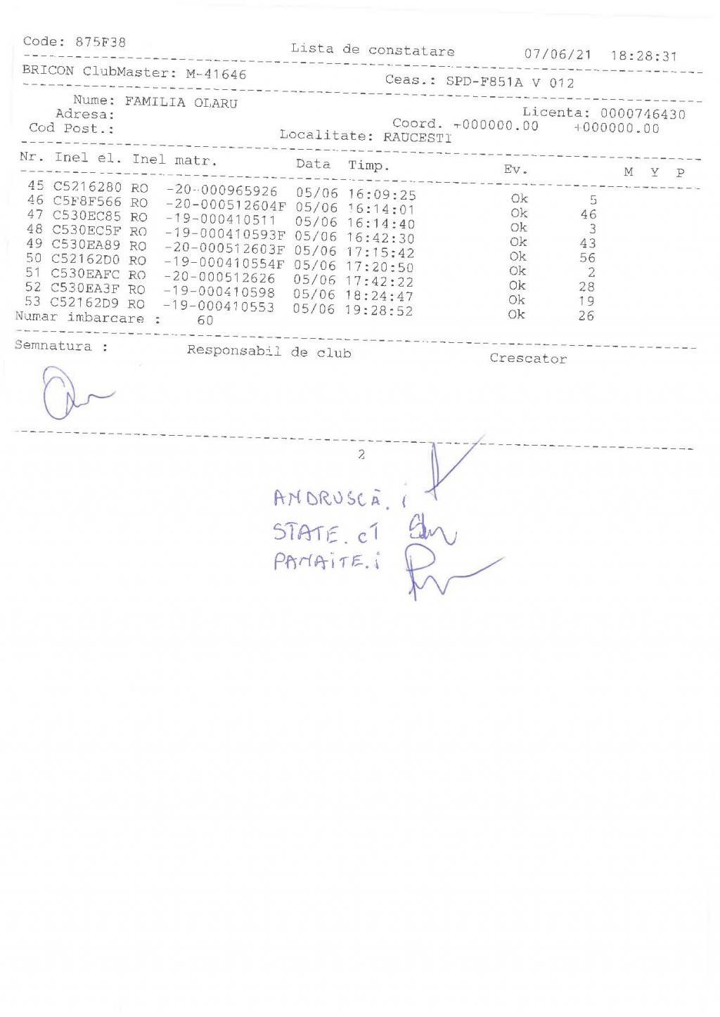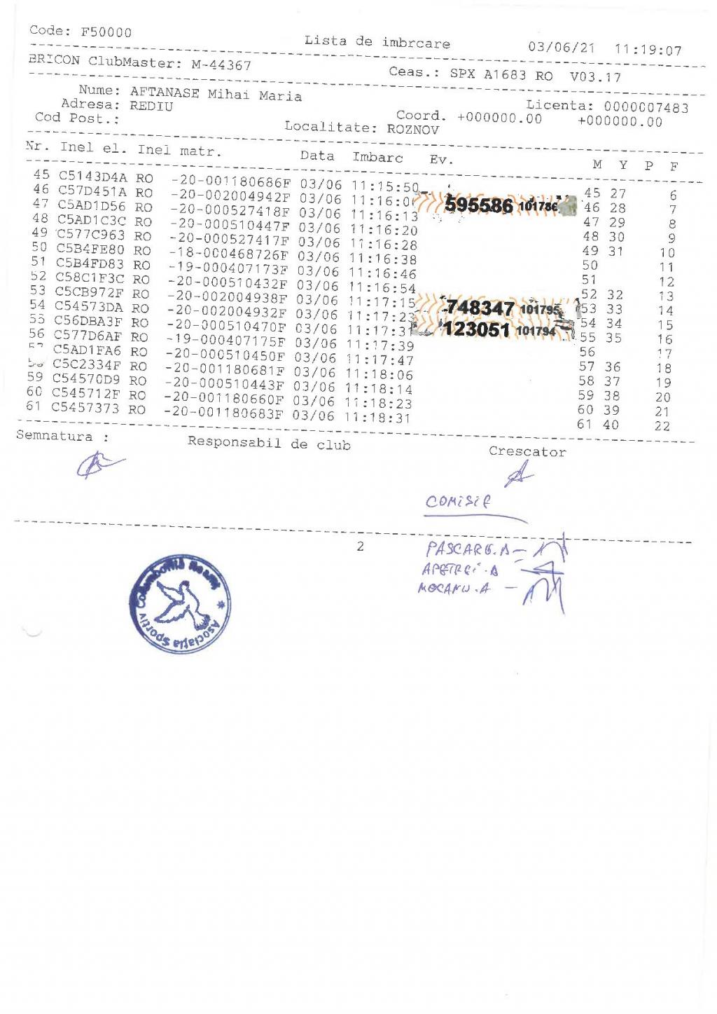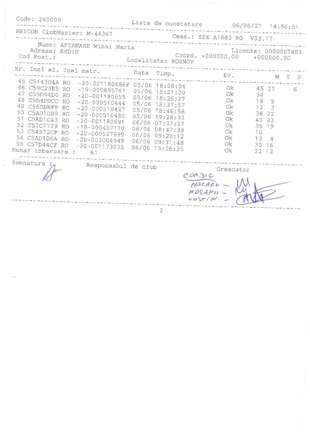 | 2 | Baciu Emil | IS9062 | Iasi |