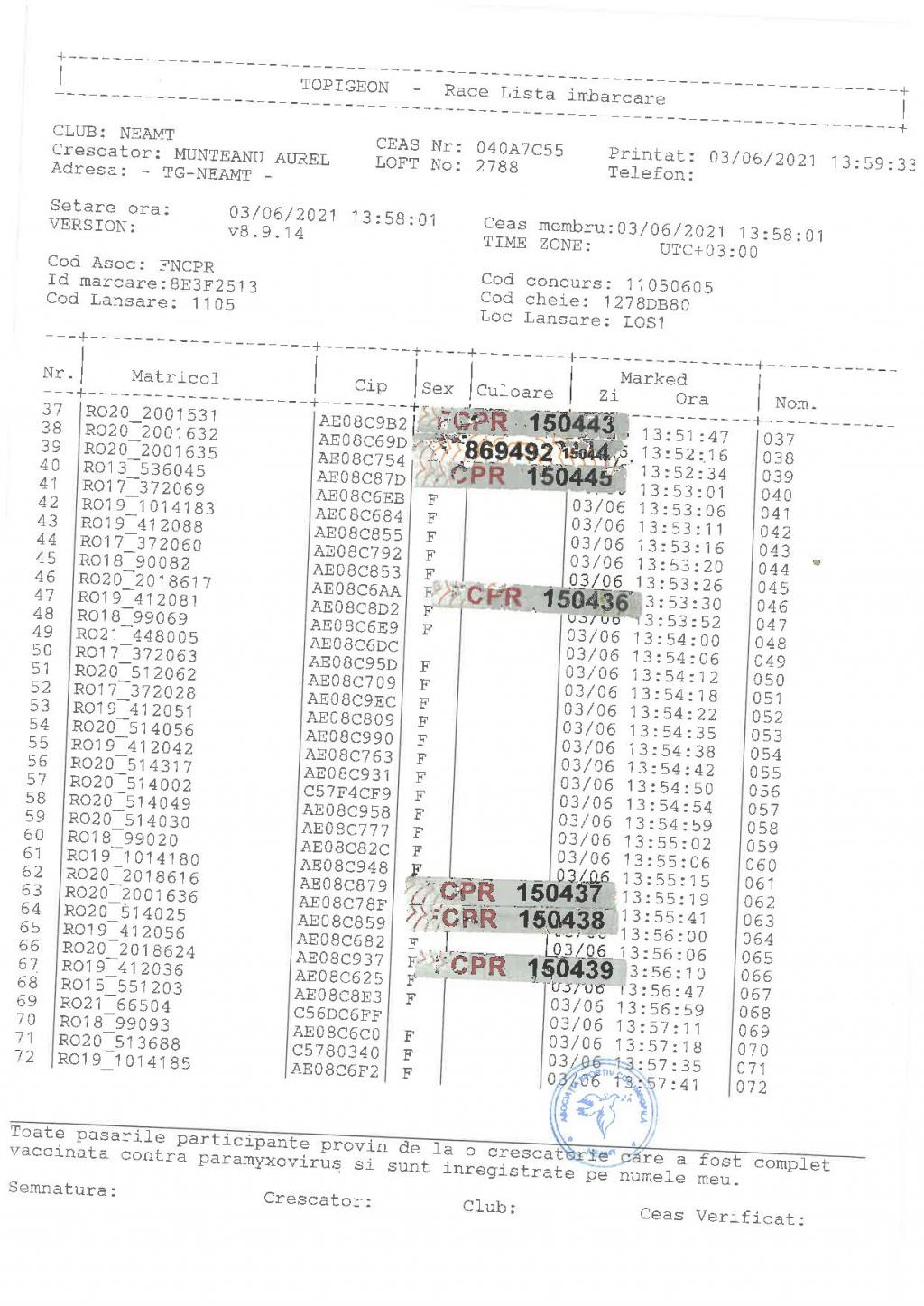 | 61 | Cociorva C-tin | NT487 | P.neamt |