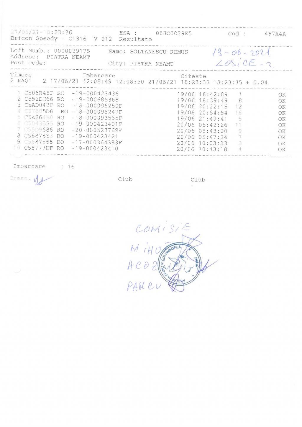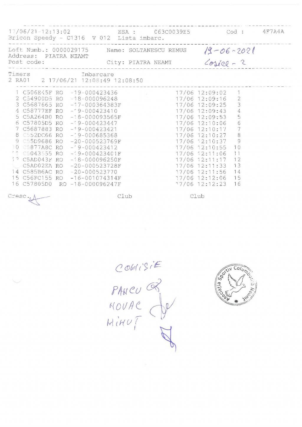 | 19 | Ivorybirds-loft | IS9312 | Iasi |