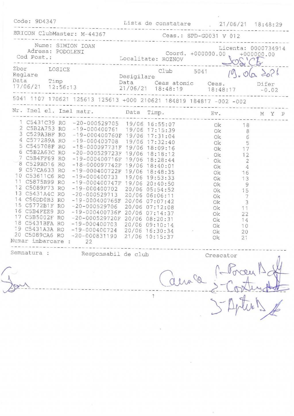 | 43 | Dobrica Bogdan Ionut | NT438 | P.neamt | [IMB P0] |
