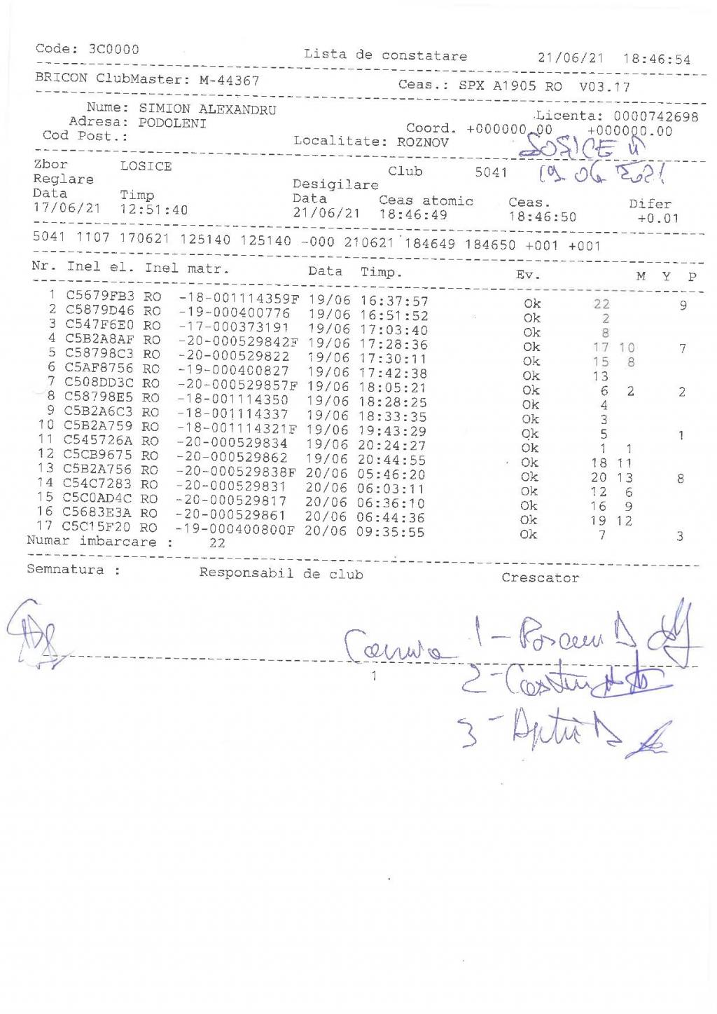 | 30 | Zamfirache Gheorghita Liviu | IS9392 | Iasi |