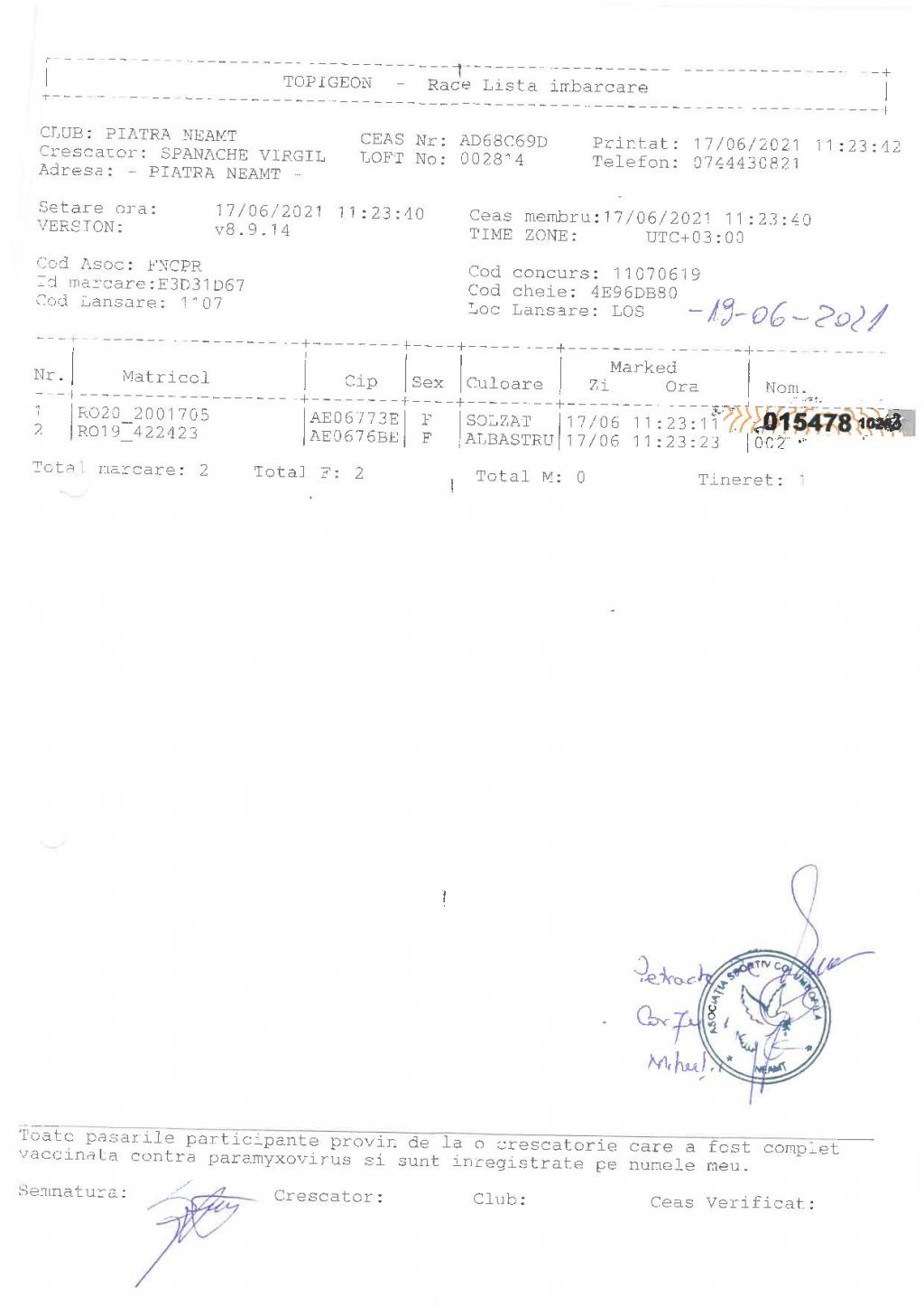 | 163 | Cotfasa Vasile | NT553 | Tg-neamt | [IMB P0] | |