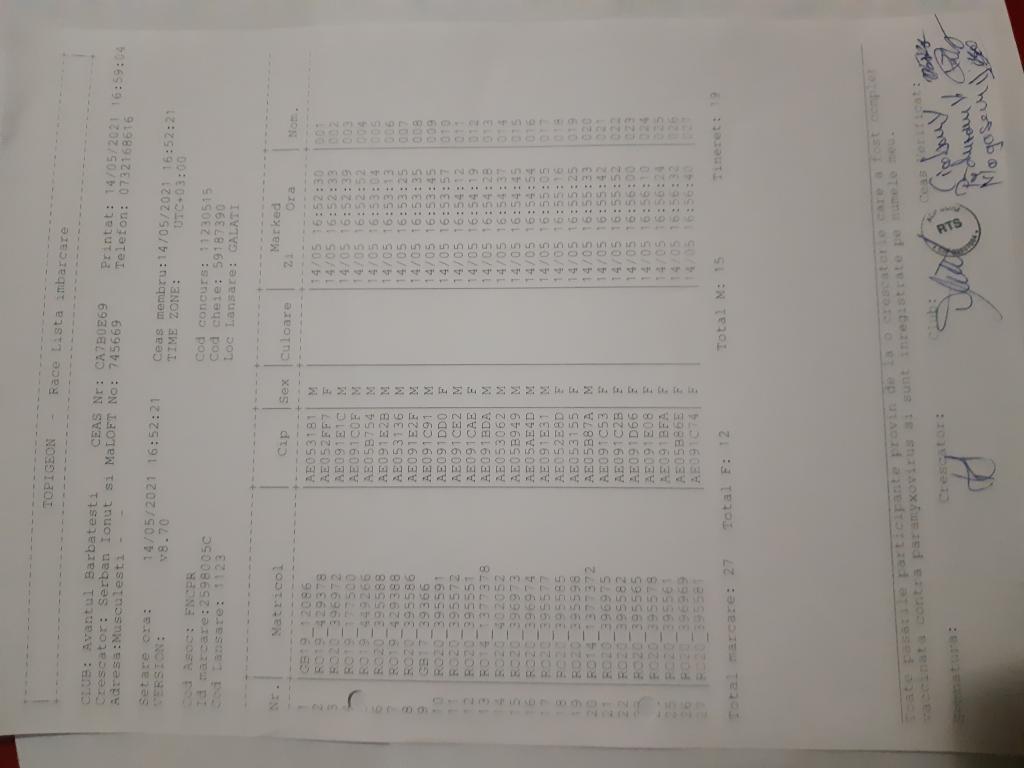 | 27 | Golumbeanu Tudor + Ileana | GJ574 | Avantul Barbatesti | [IMB P0] |