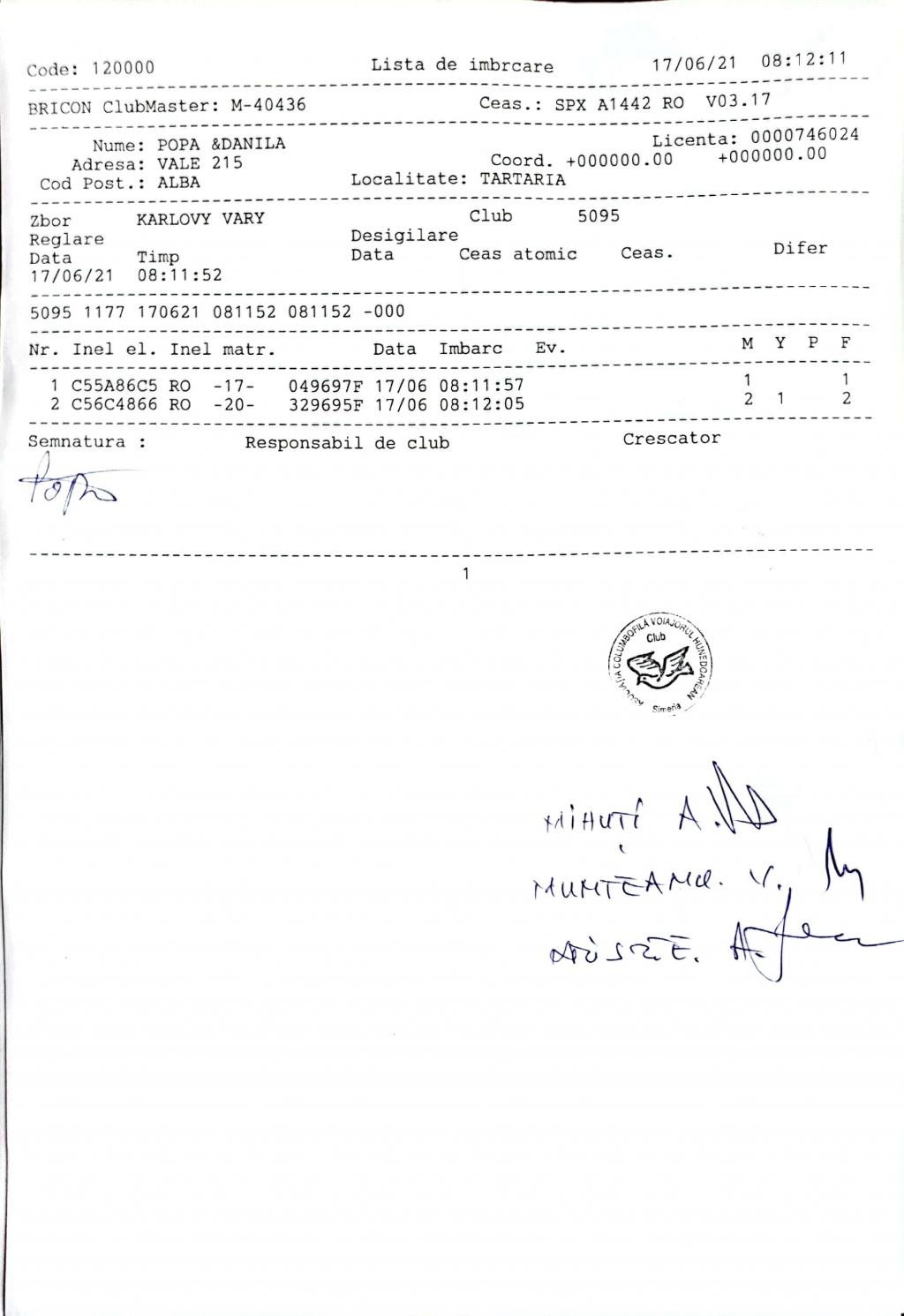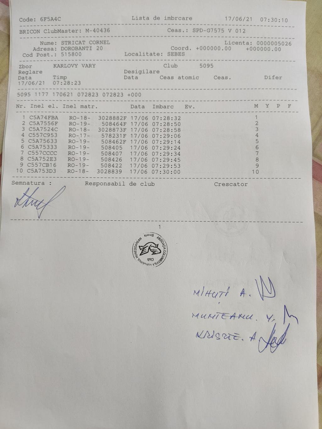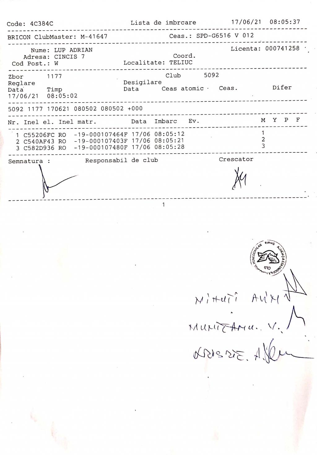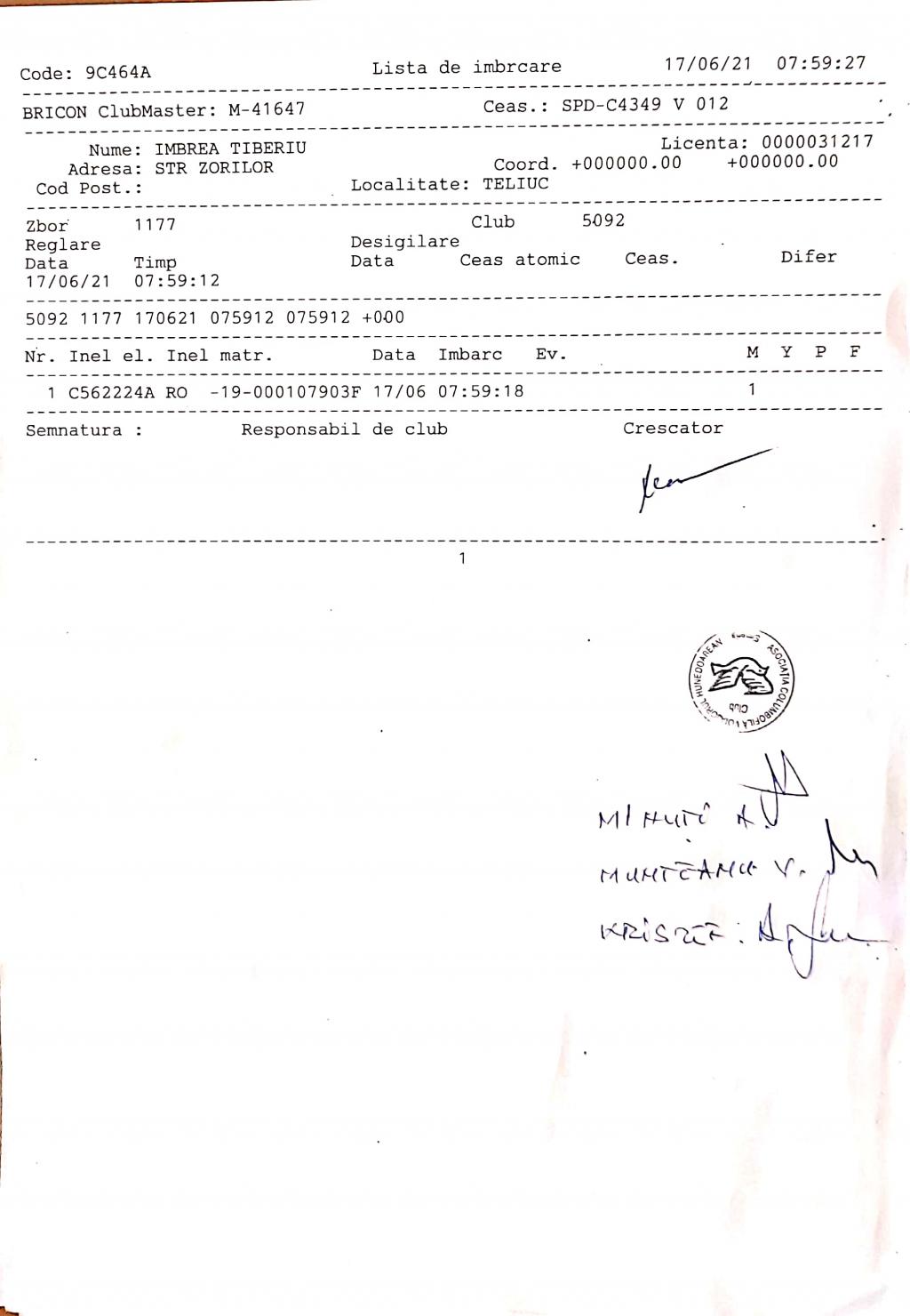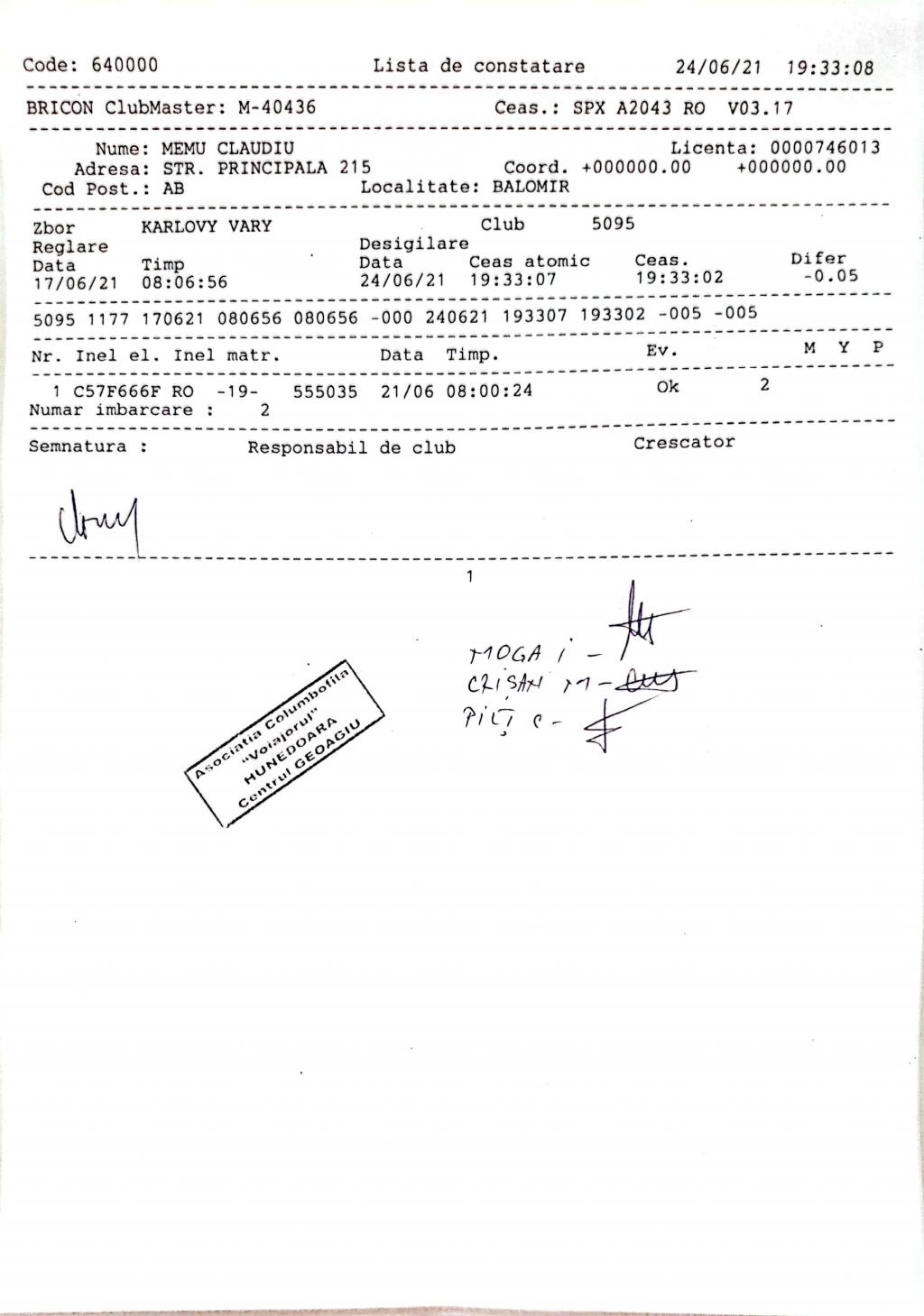 | 255 | Stricat Cornel | AB64 | simeria | [IMB P0] | |