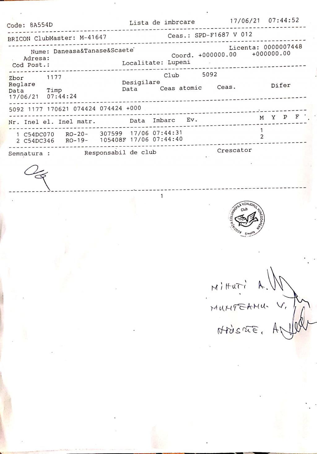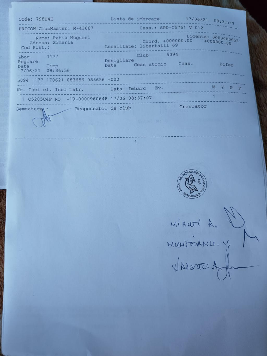 | 191 | Toma Adrian | HD1205 | simeria |