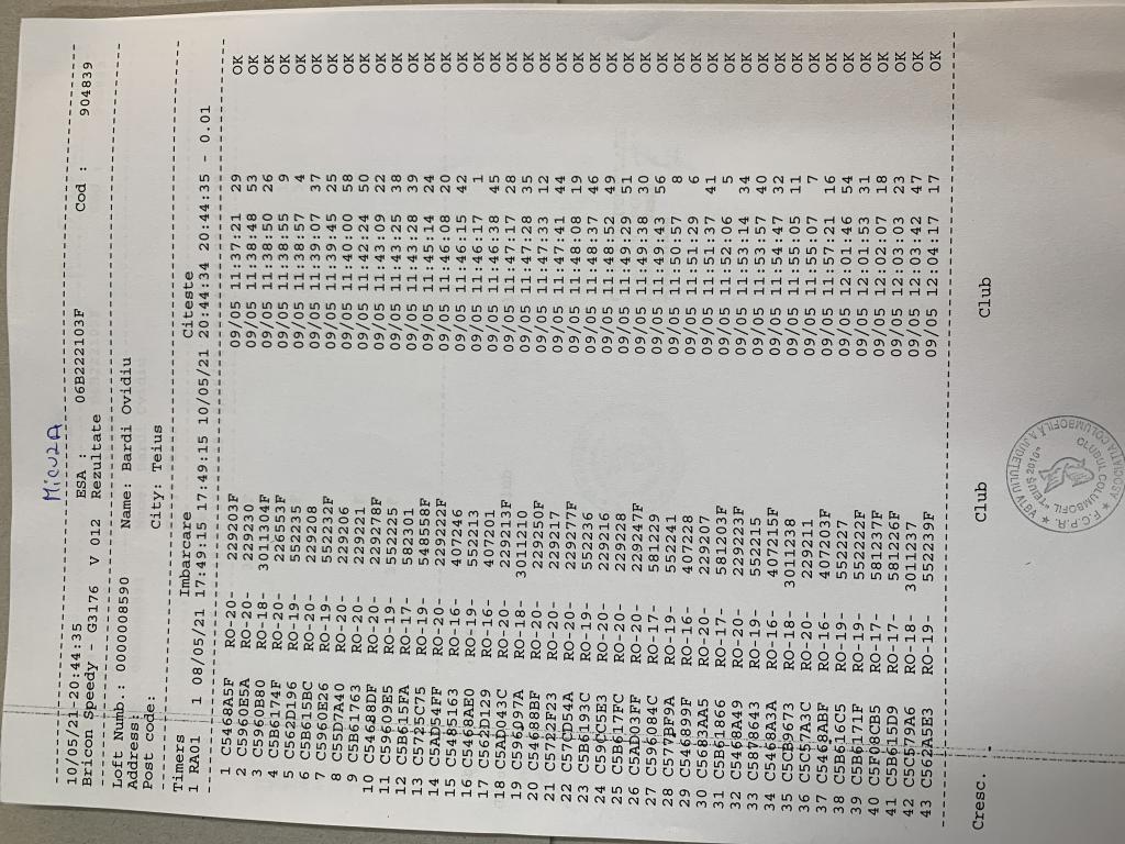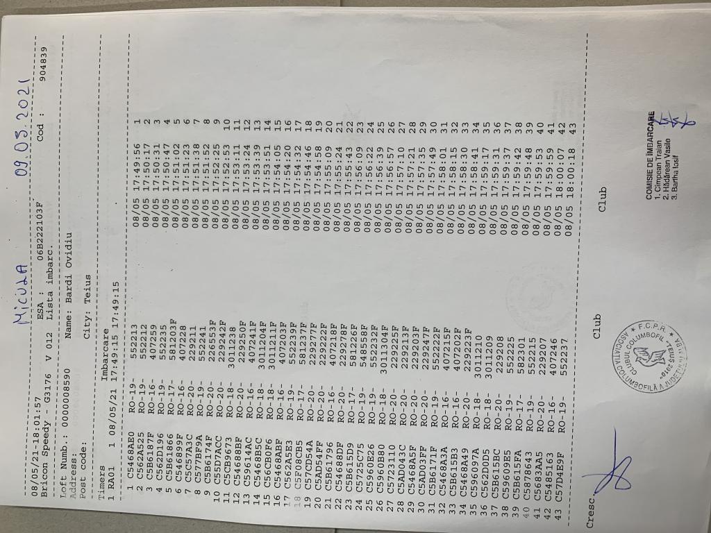 | 201 | Pacurar Cosmin | AB84 | Teius |