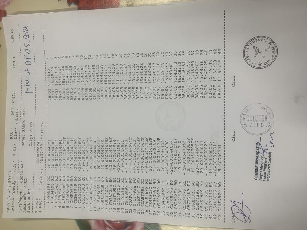 | ## | NUME | COD | CLUB/CENTRU IMBARCARE | FISA - IMBARCARE | FISA - DESIGILARE |