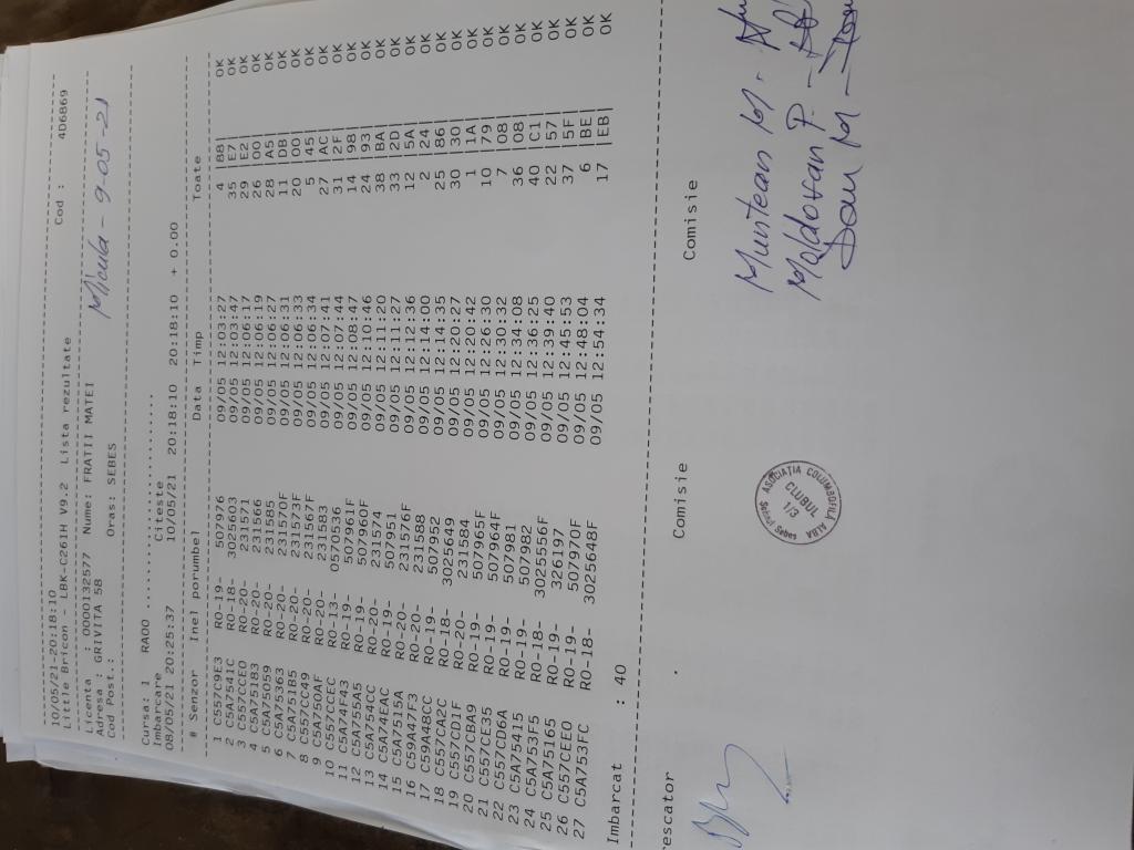 | 9 | Bradea Ioan | AB1079 | Aiud | [IMB P0] [IMB P1] | [DES P0] |