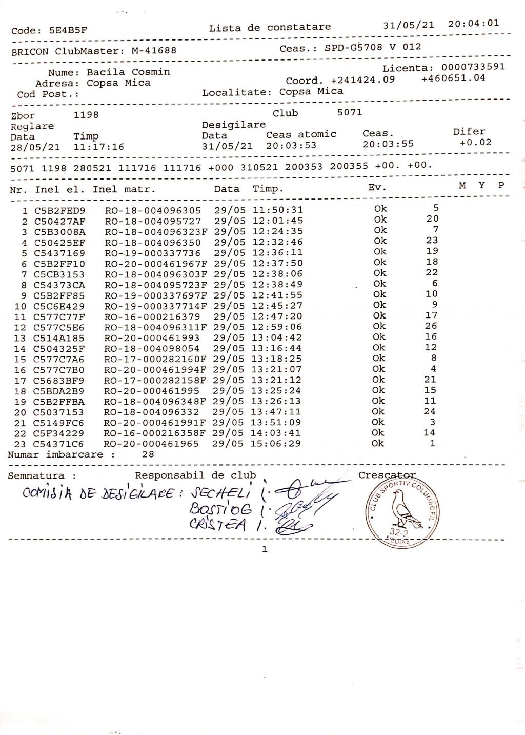 | 194 | Miniuc Sorin | SB537 | Sibiu | [IMB P0] |