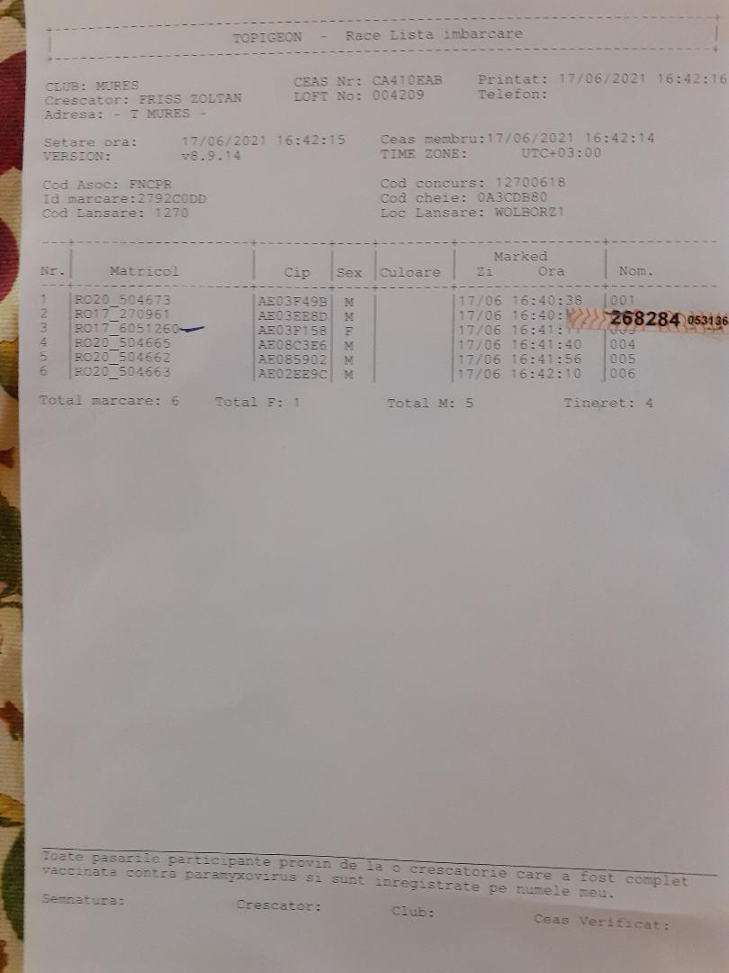 | 158 | Tatar Mihai Carol | MS559 | Tg-mures |