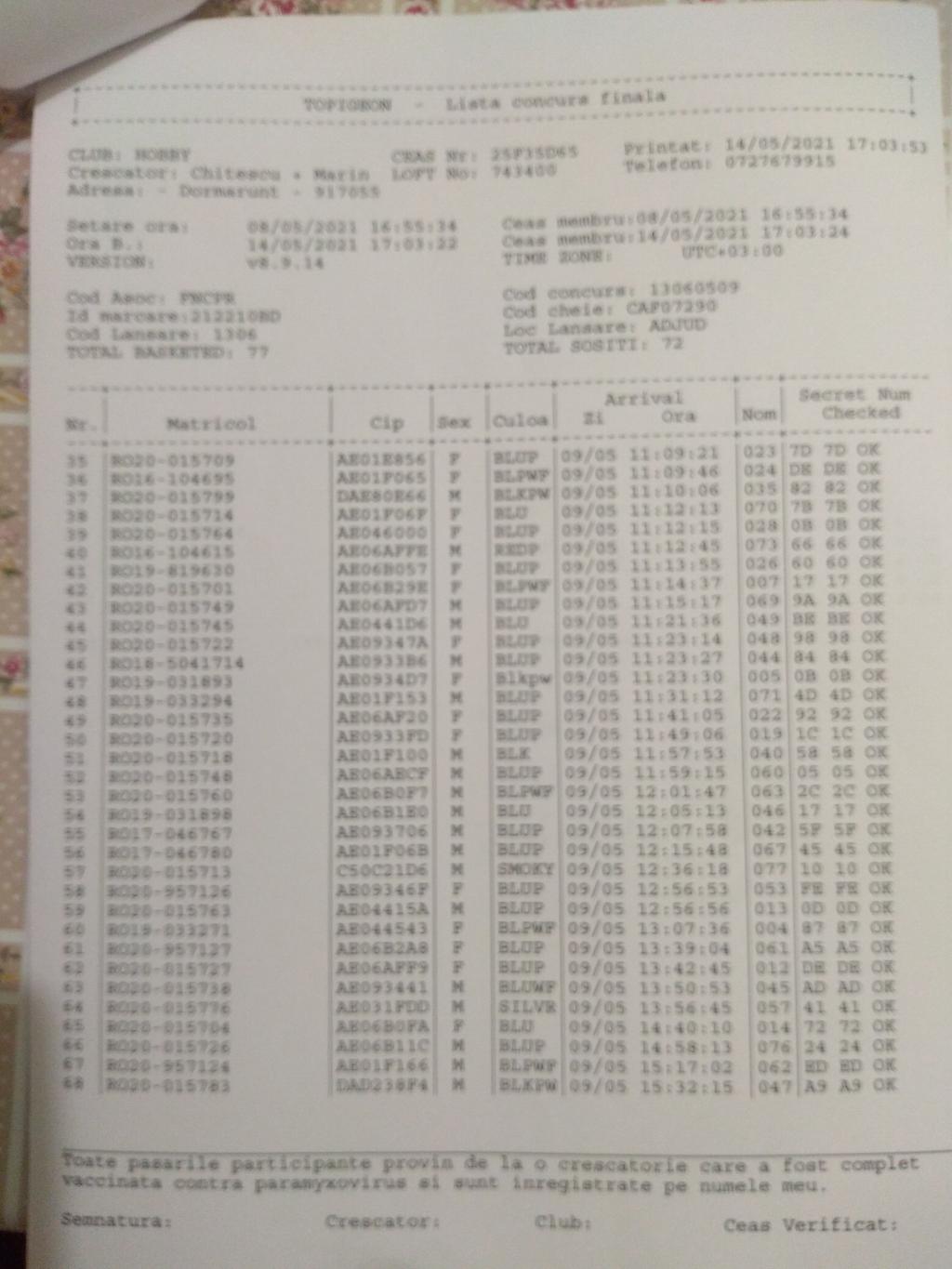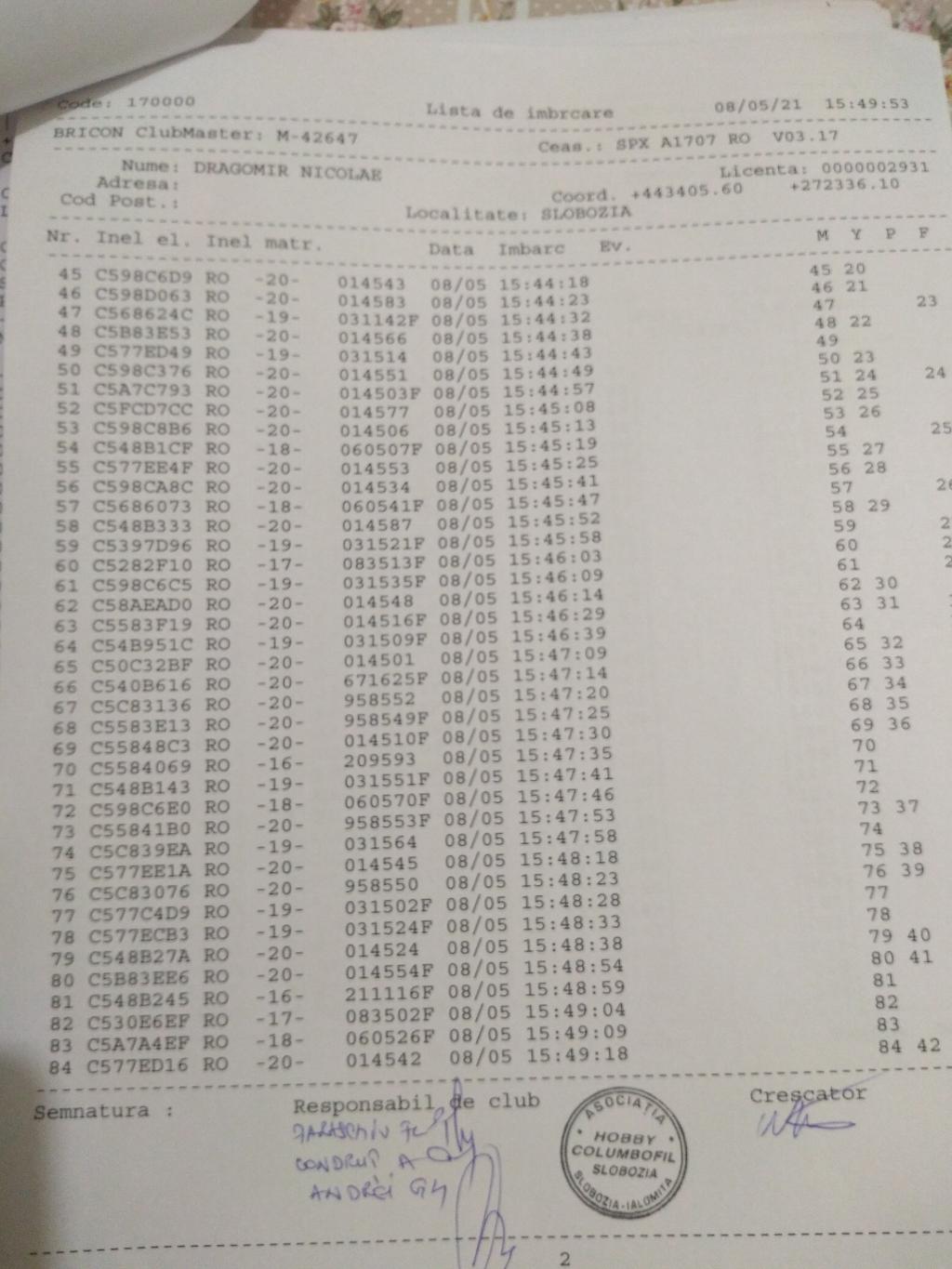 | 99 | Antonesei Liviu | IL375 | Slobozia | [IMB P0] [IMB P1] | [DES P0] [DES P1] |