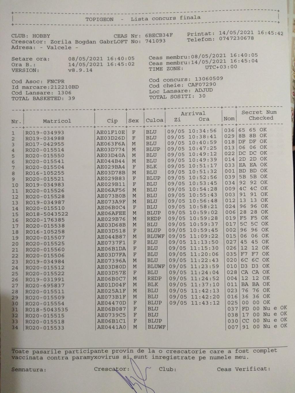 | 39 | Ionescu Corneliu + Sorin | CL129 | Calarasi 1 | [IMB P0] | [DES P0] |