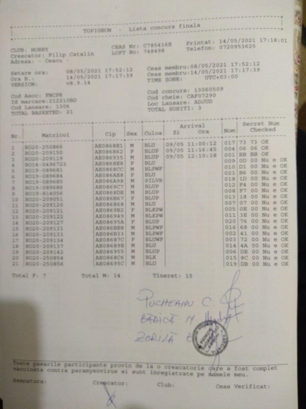 | 7 | Cioceanu Florin | IL181 | Amara | [IMB P0] [IMB P1] | [DES P0] [DES P1] |