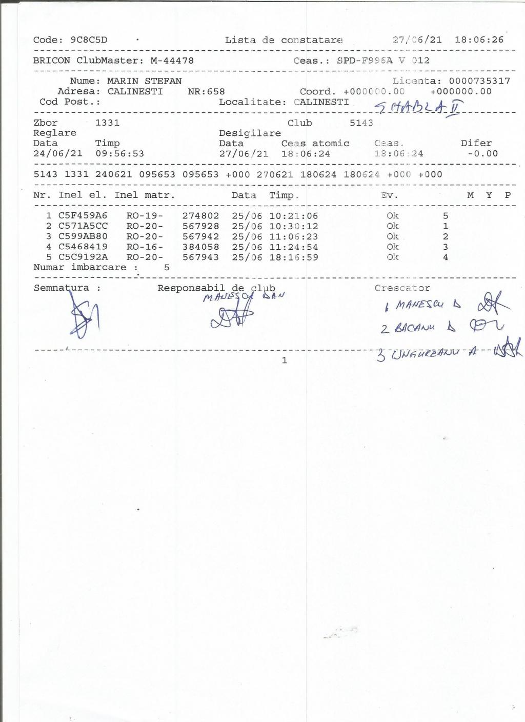 | 9 | Curtasu Viorel | AG973 | Bradu | [IMB P0] | [DES P0] |