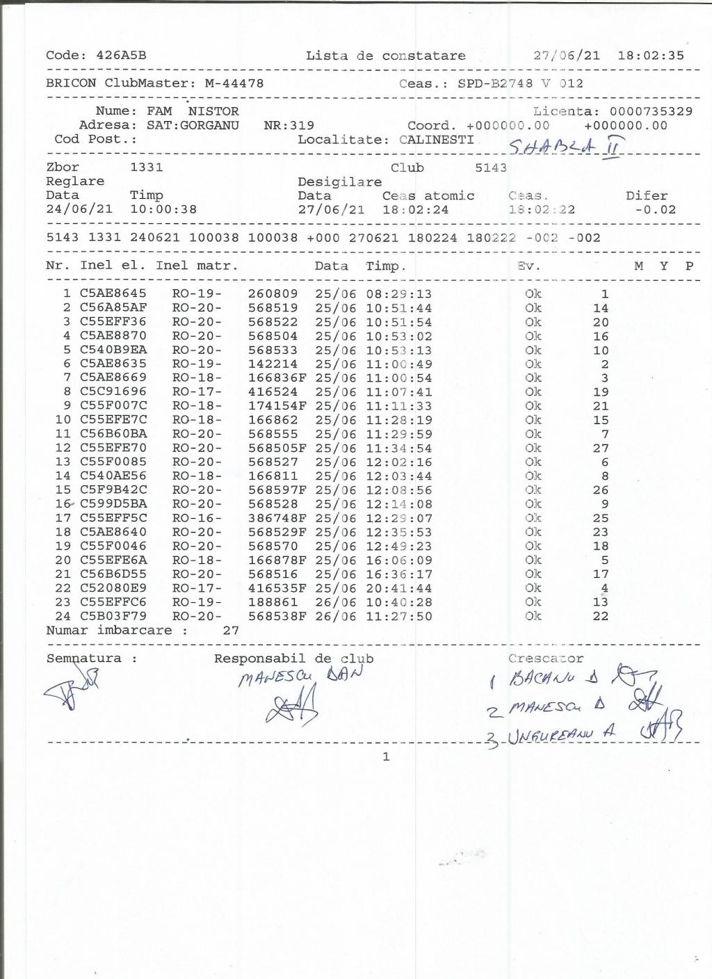 | 37 | Manescu Daniel | AG757 | Calinesti |