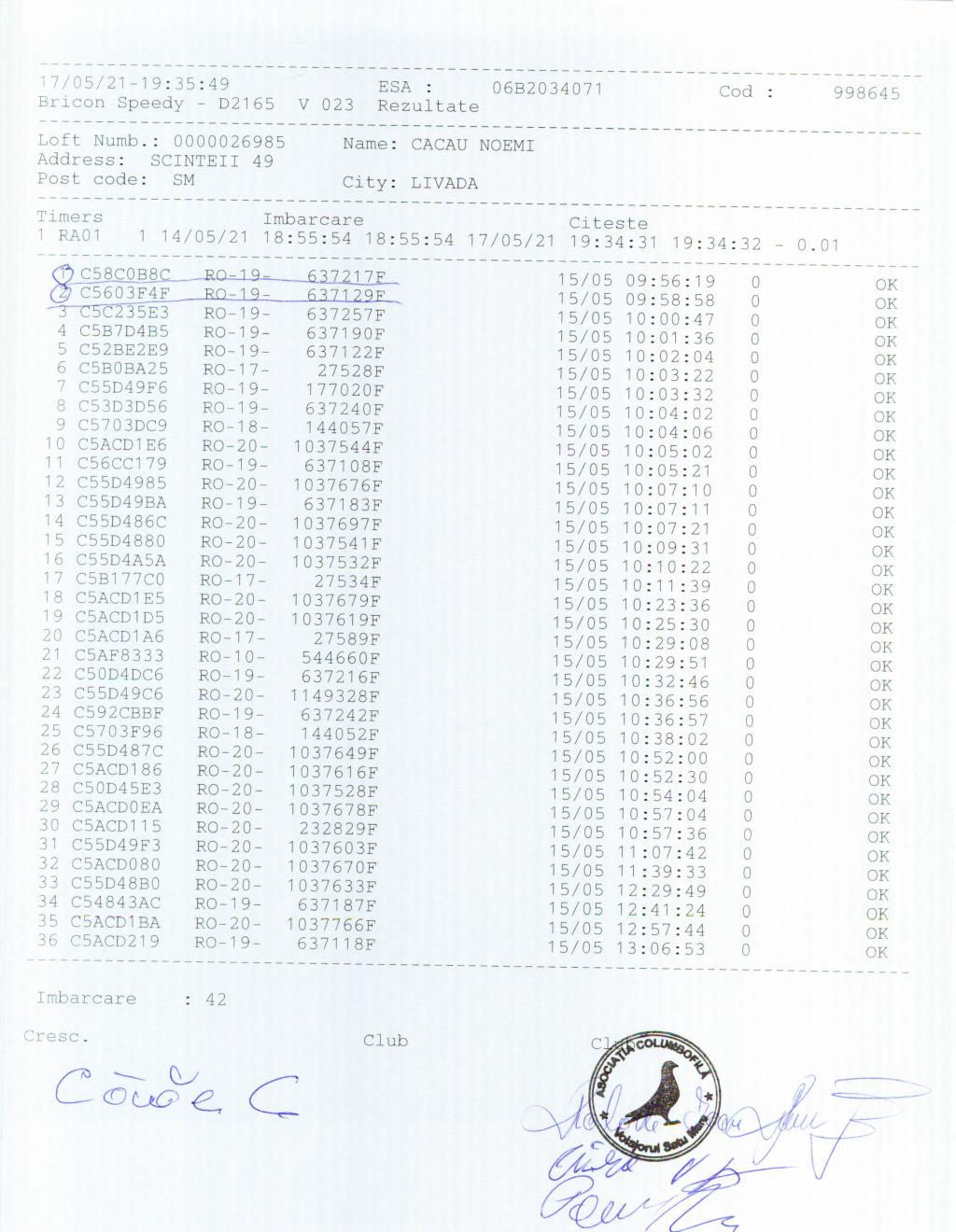 | 49 | Pop Ovidiu | SM526 | Livada |