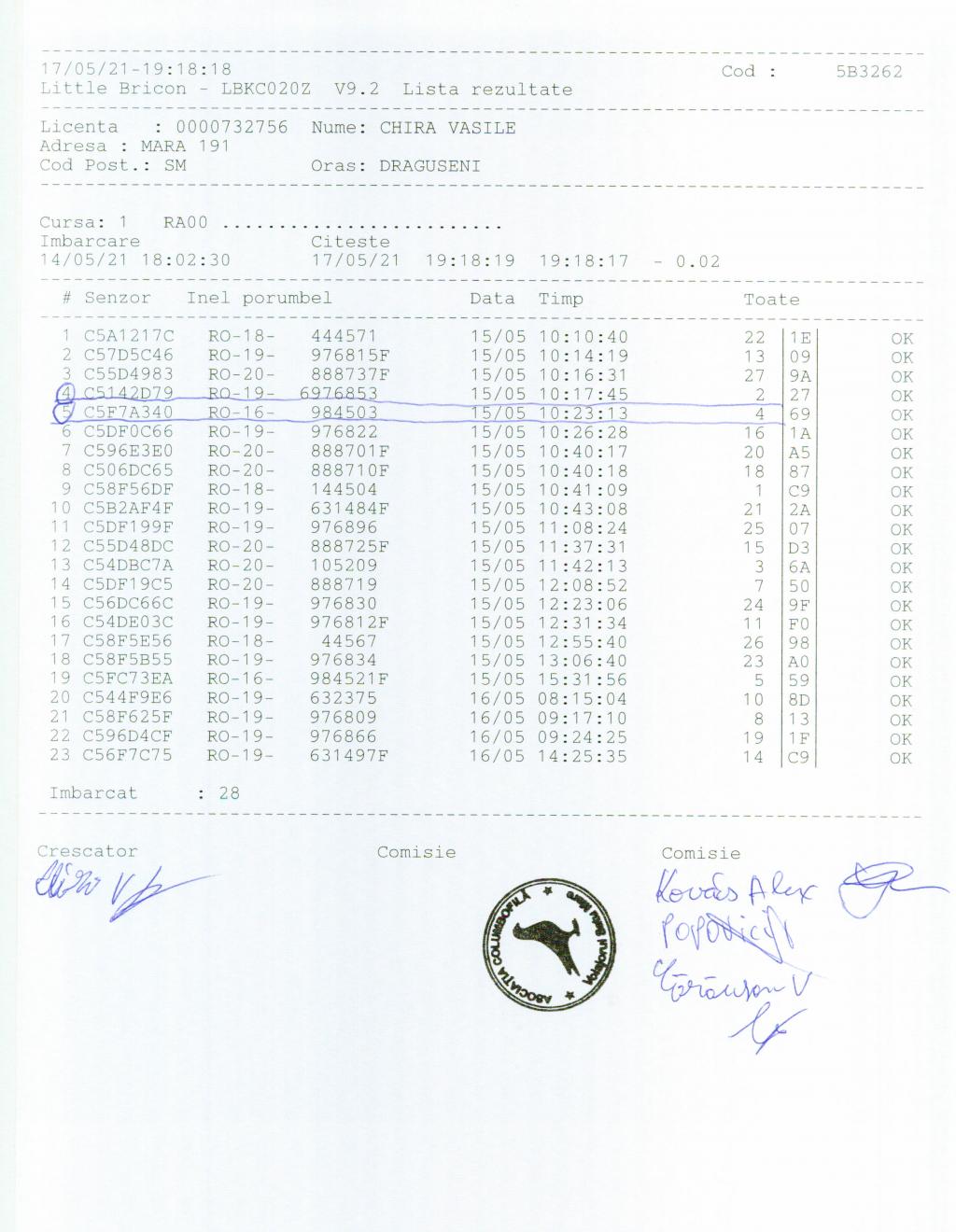 | 17 | Onodi Vasile | SM406 | Carei |