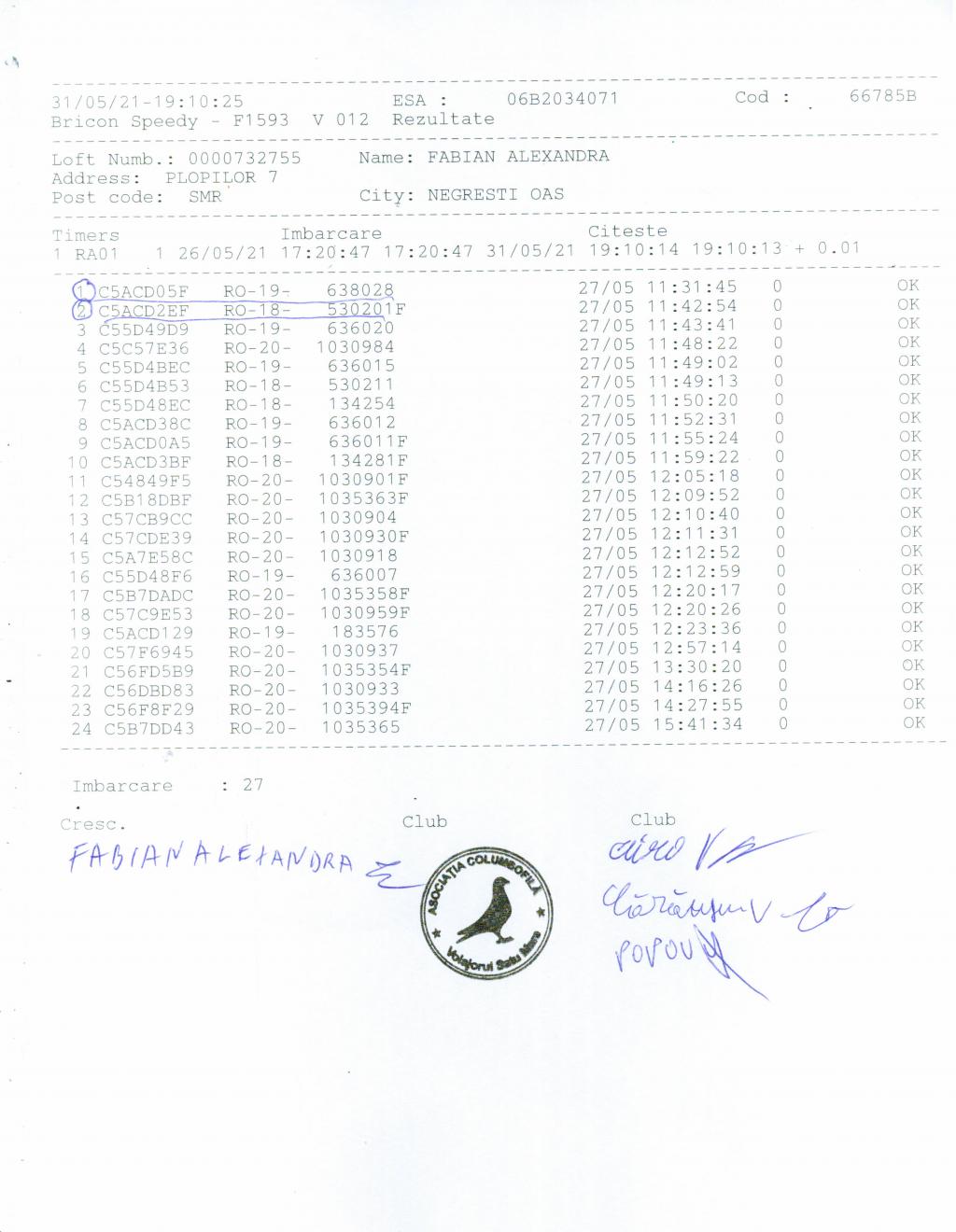 | 35 | Fabian Georgiana Teodor | SM467 | Livada | [IMB P0] | [DES P0] |