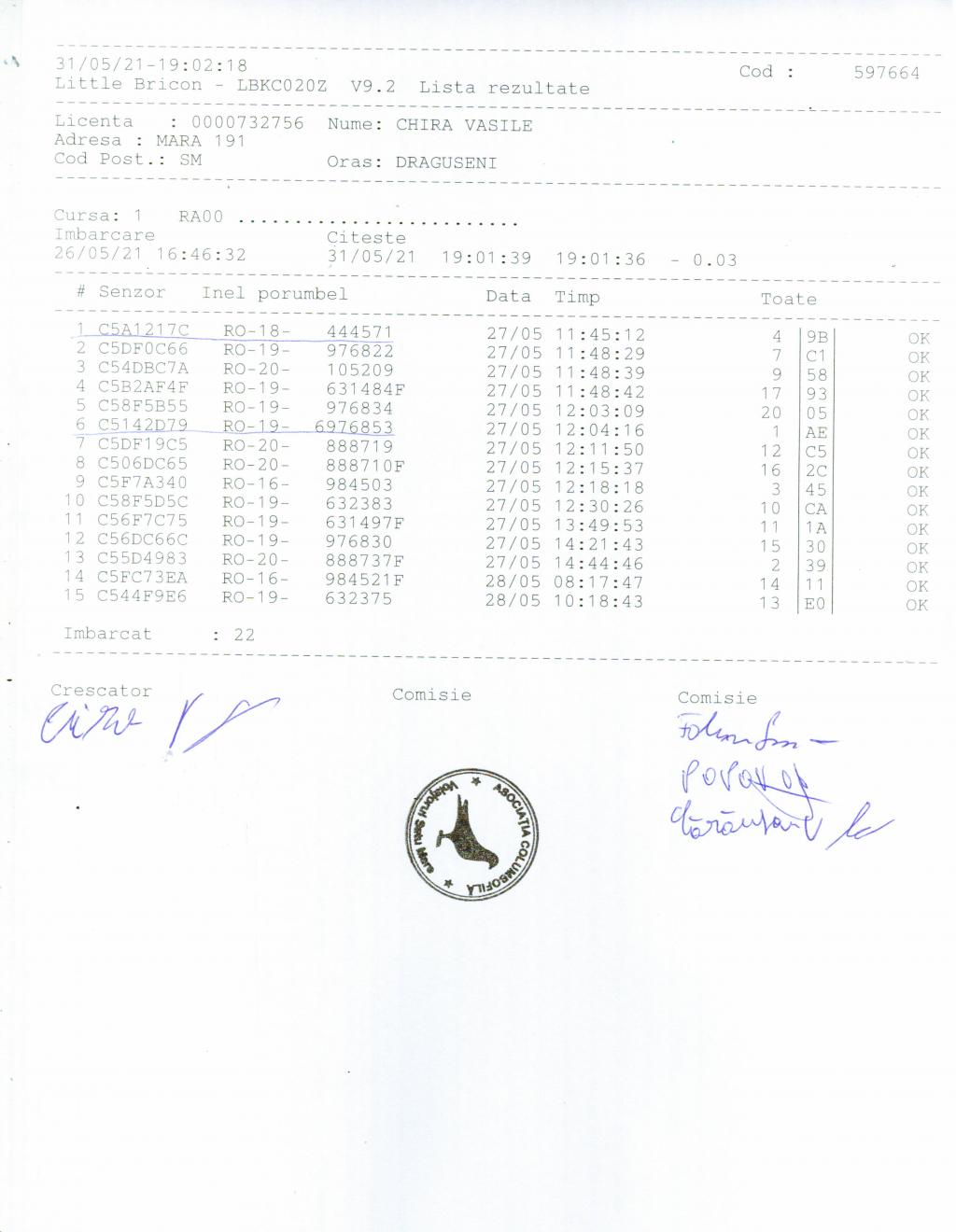 | 22 | Raucsina Tiberiu | SM409 | Carei | [IMB P0] | [DES P0] |