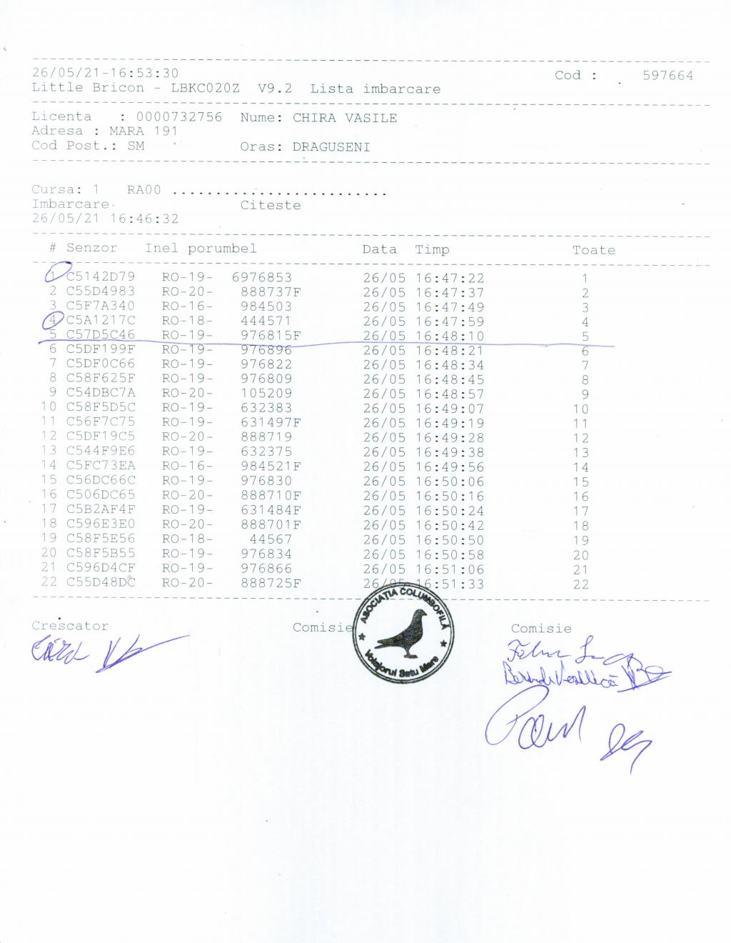 | 50 | Roatis Gheorghe | SM529 | Livada |