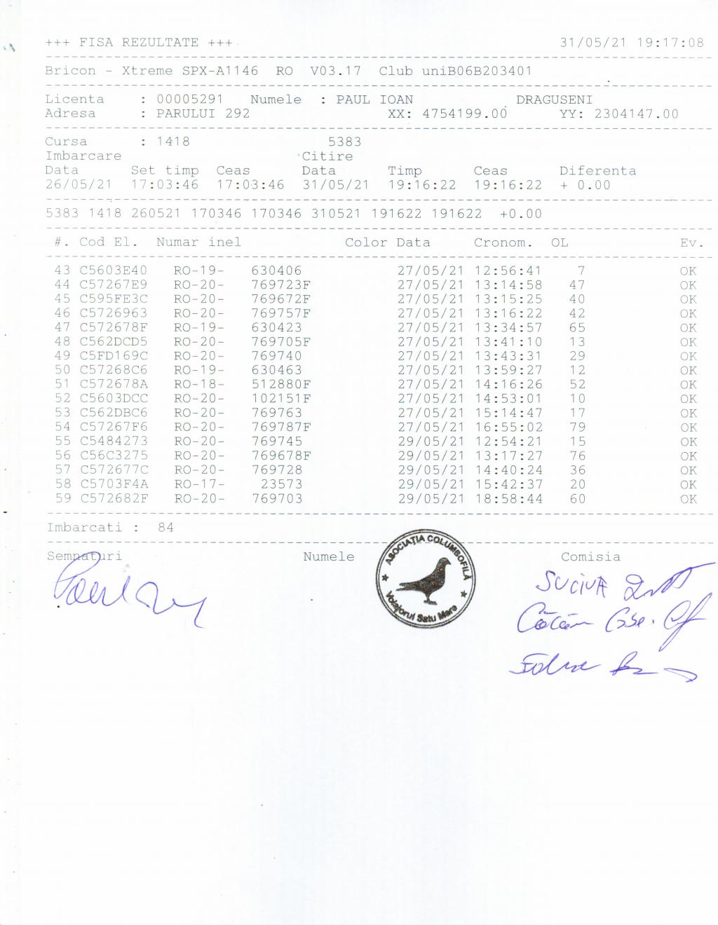 | 17 | Onodi Vasile | SM406 | Carei |