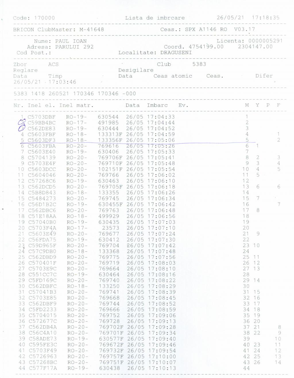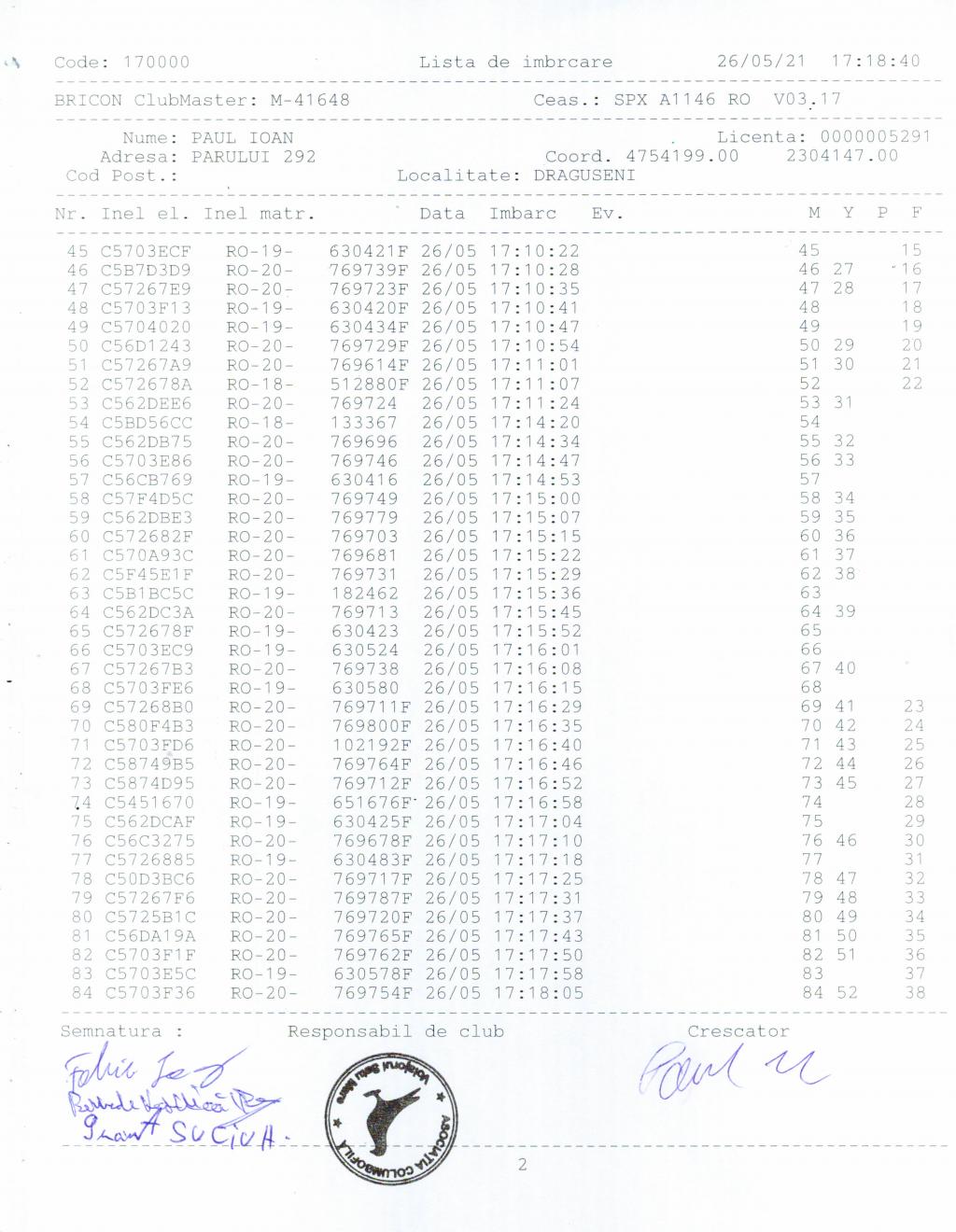 | 105 | Rus Cristian | SM137 | Satu Mare | [IMB P0] | [DES P0] |