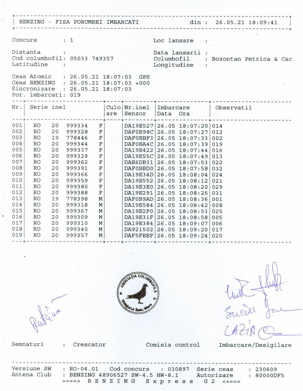 | 1 | Bacs Andrei | SM490 | Carei | [IMB P0] | |
