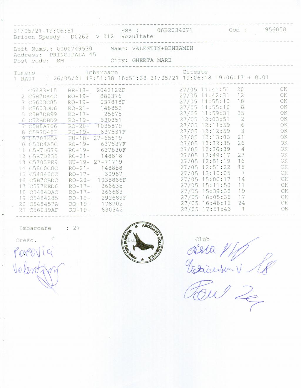 | 26 | Vas Istvan | SM456 | Carei | [IMB P0] | [DES P0] |