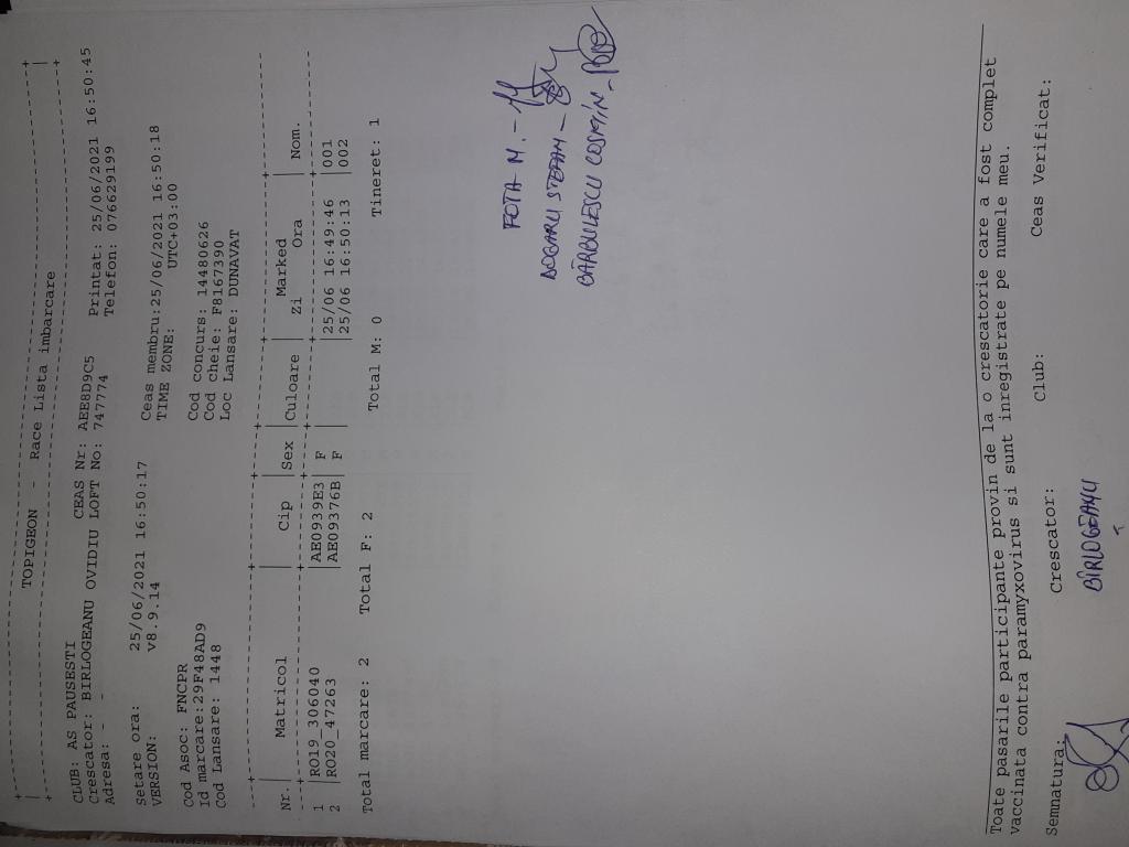| 17 | Stoican Nicolae | VL1047 | As Pausesti | [IMB P0] | |