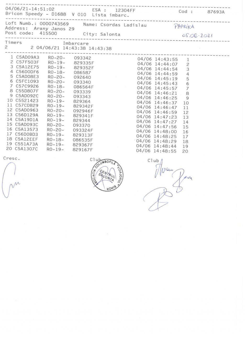| 20 | Popa Liviu | BH1246 | Alesd |