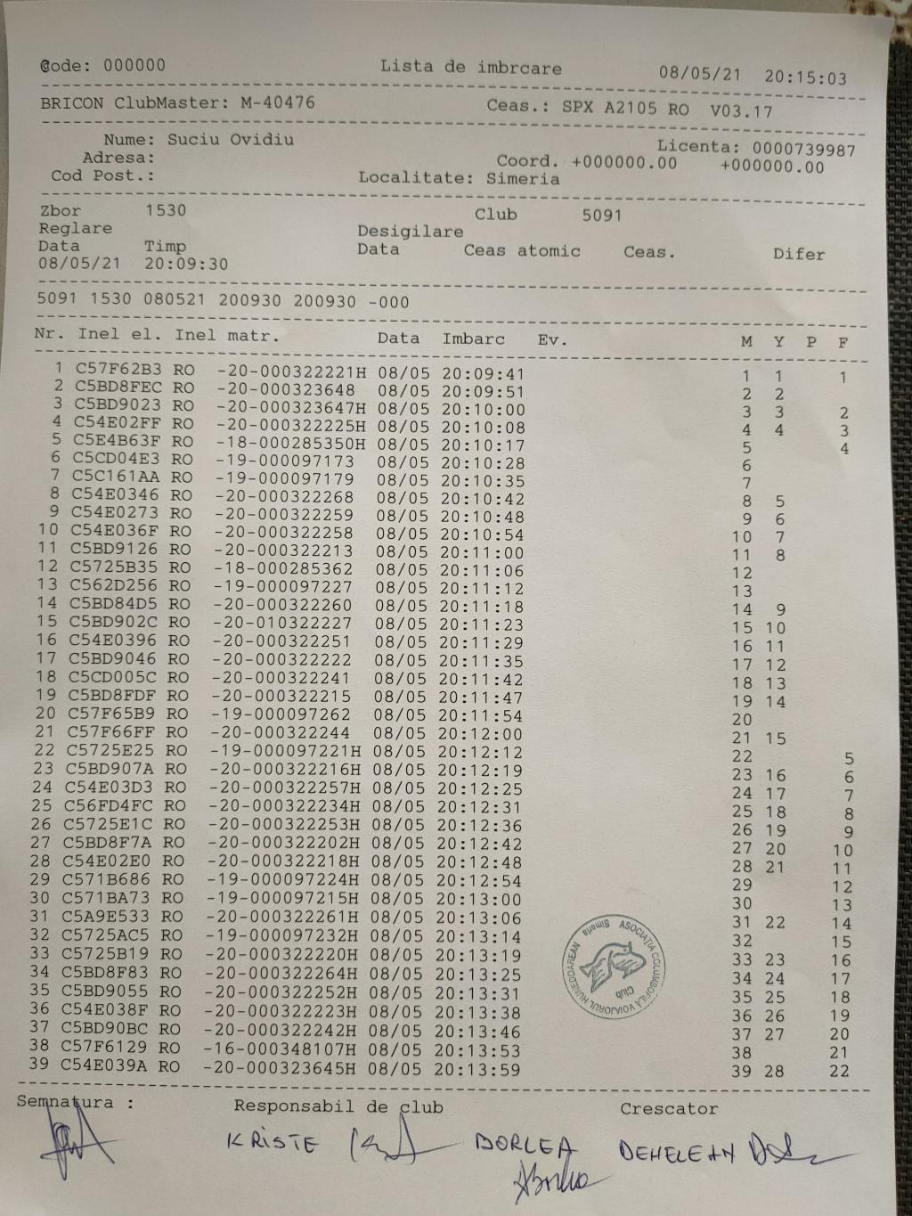 | 195 | Kulcsar Robert | HD549 | simeria |