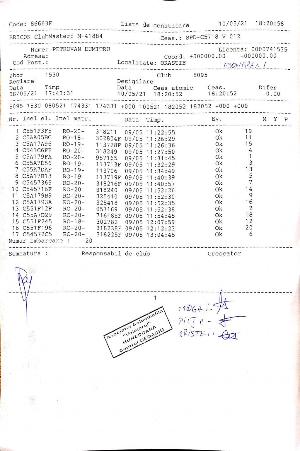 | 201 | Petraru Alexandru | HD1136 | simeria |