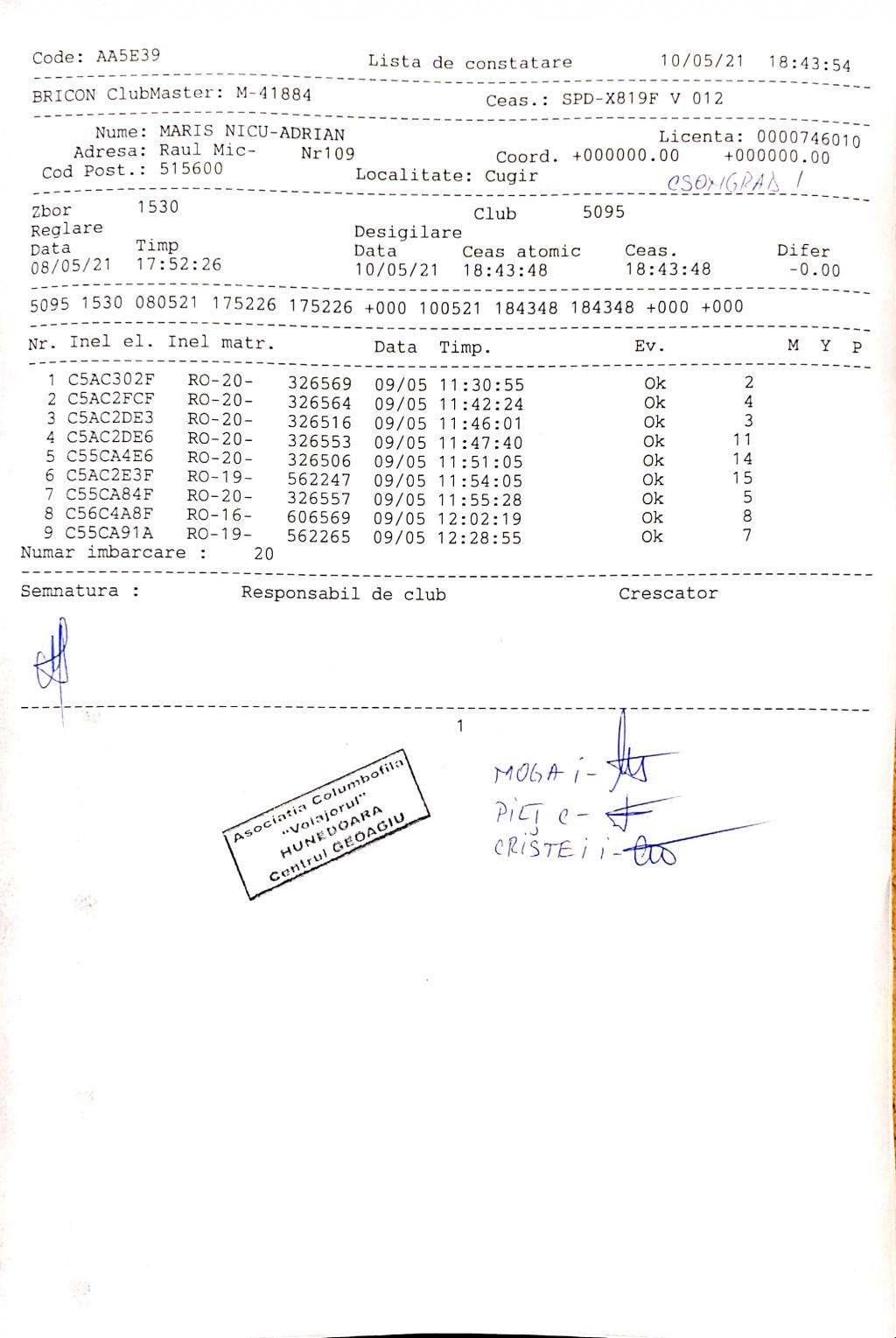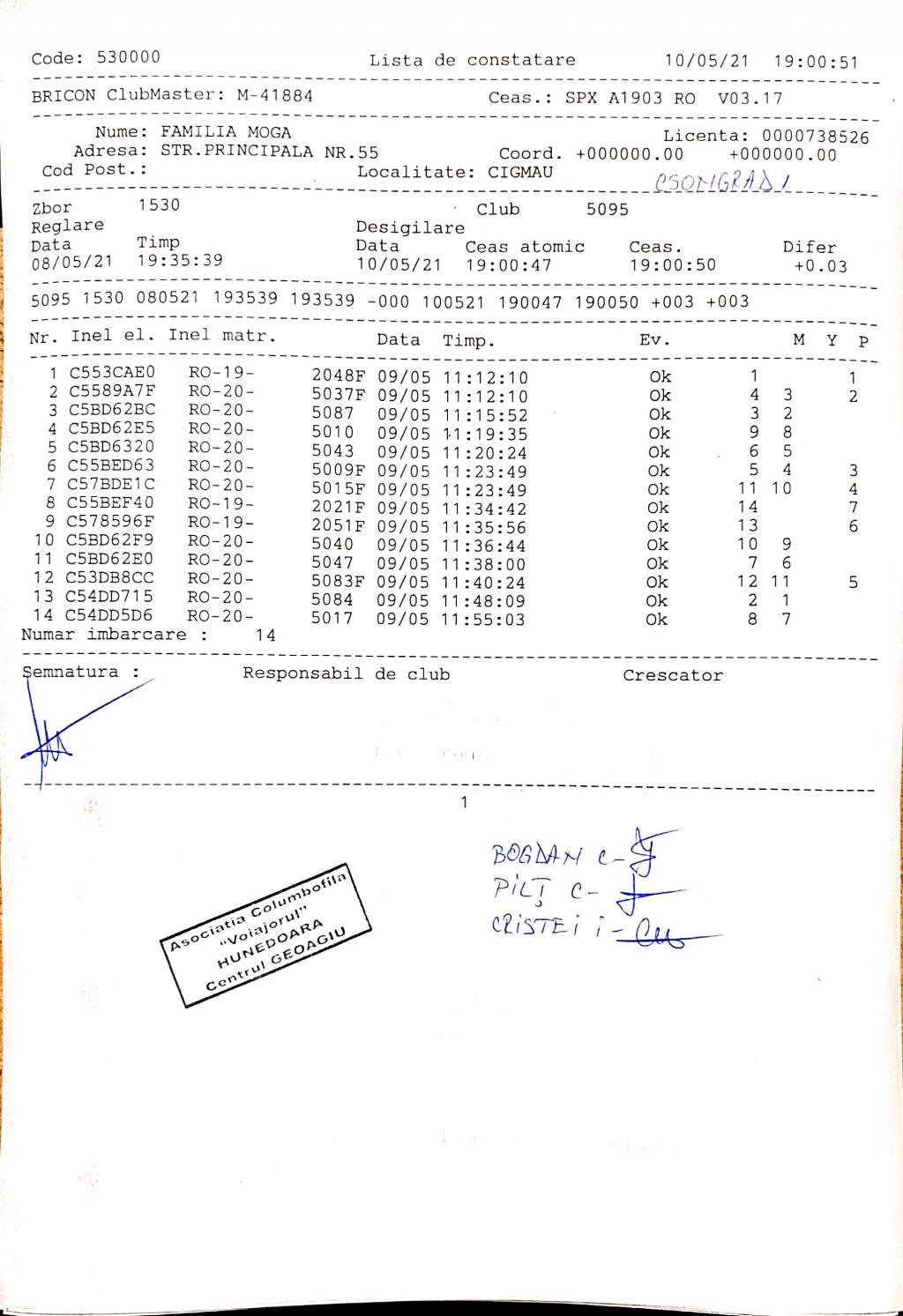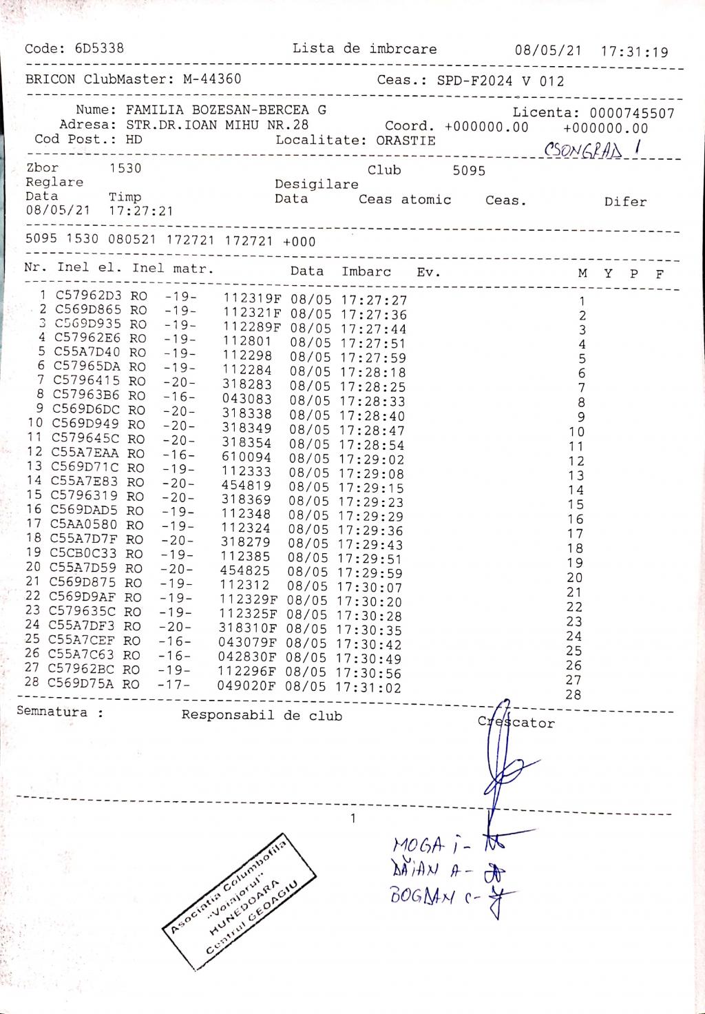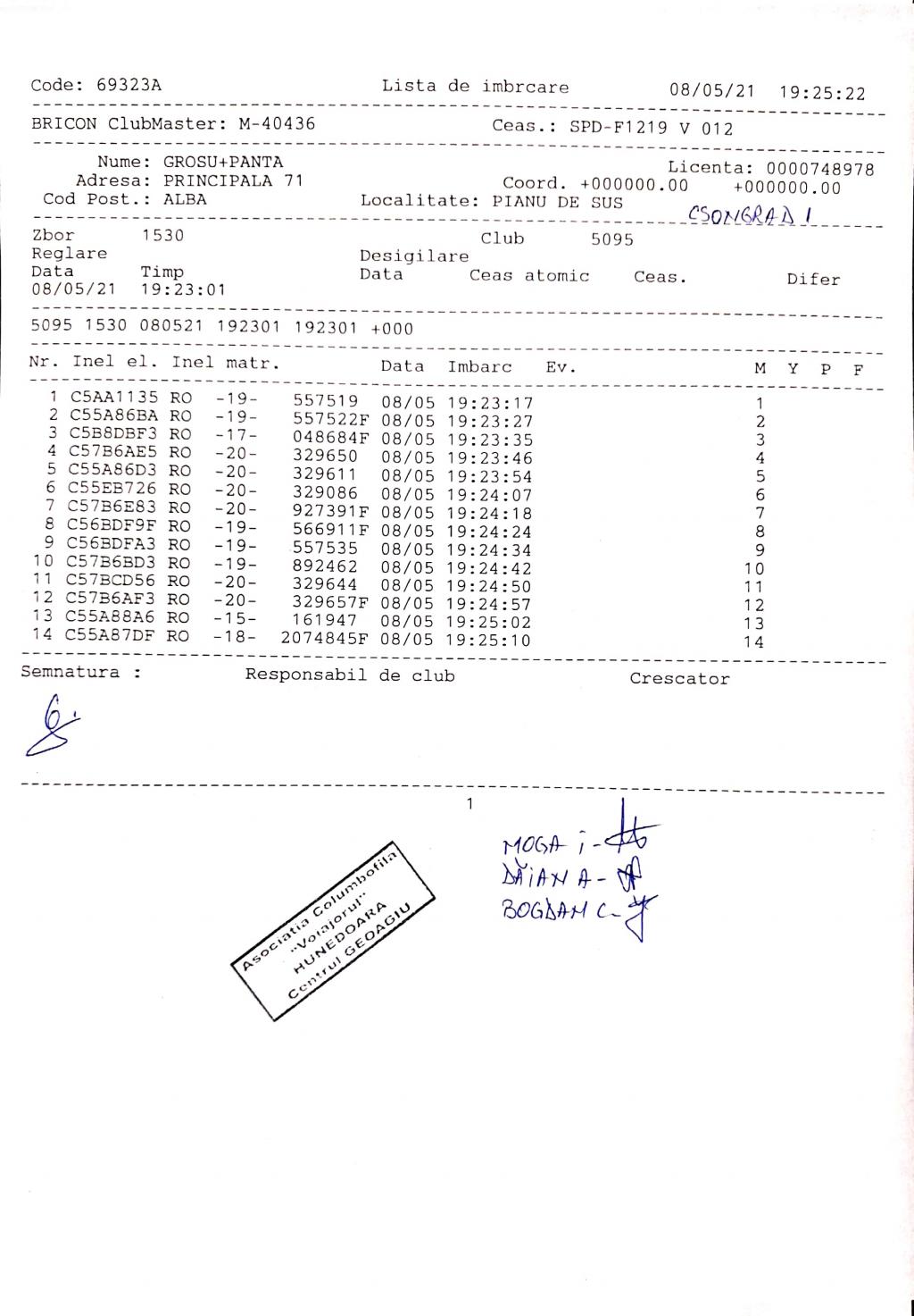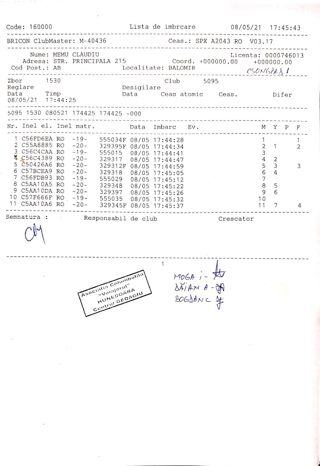 | 1 | Almasan Vasile + Ionut + Alin | HD1009 | BRAD |