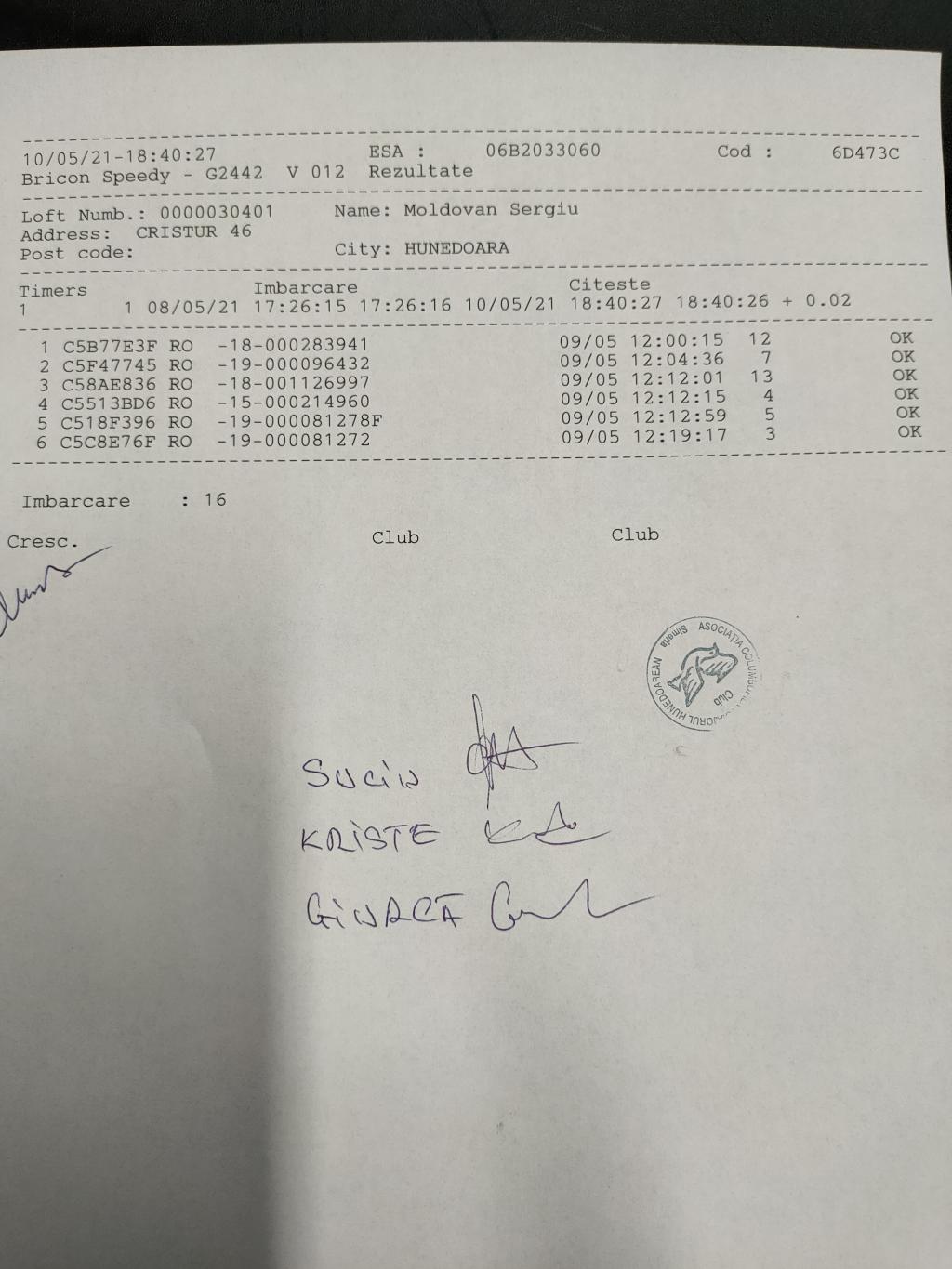 | 203 | Renghea Florin | HD912 | simeria |