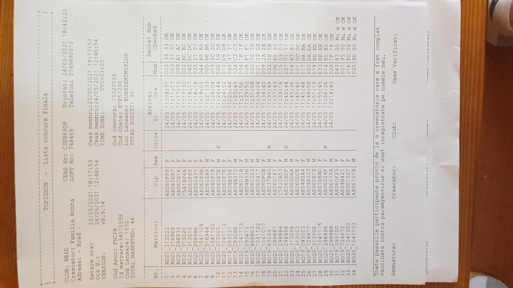 | 1 | Almasan Vasile + Ionut + Alin | HD1009 | BRAD |