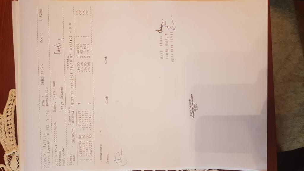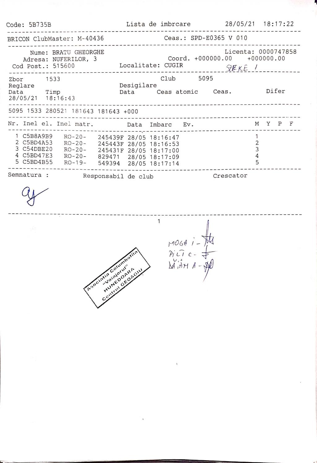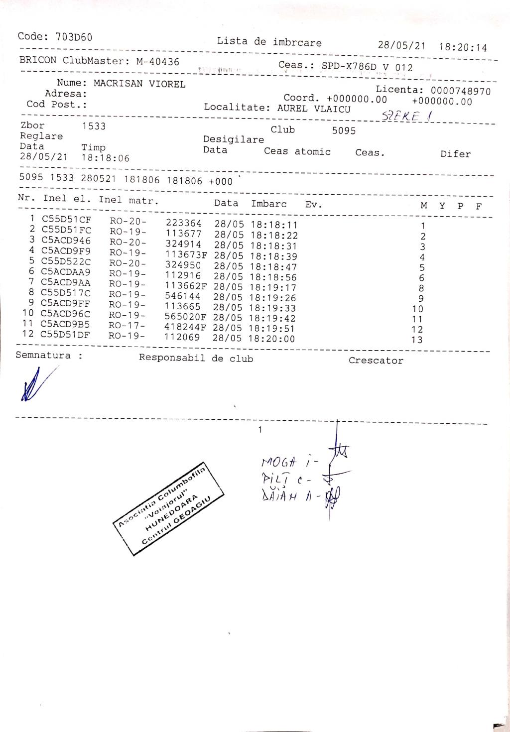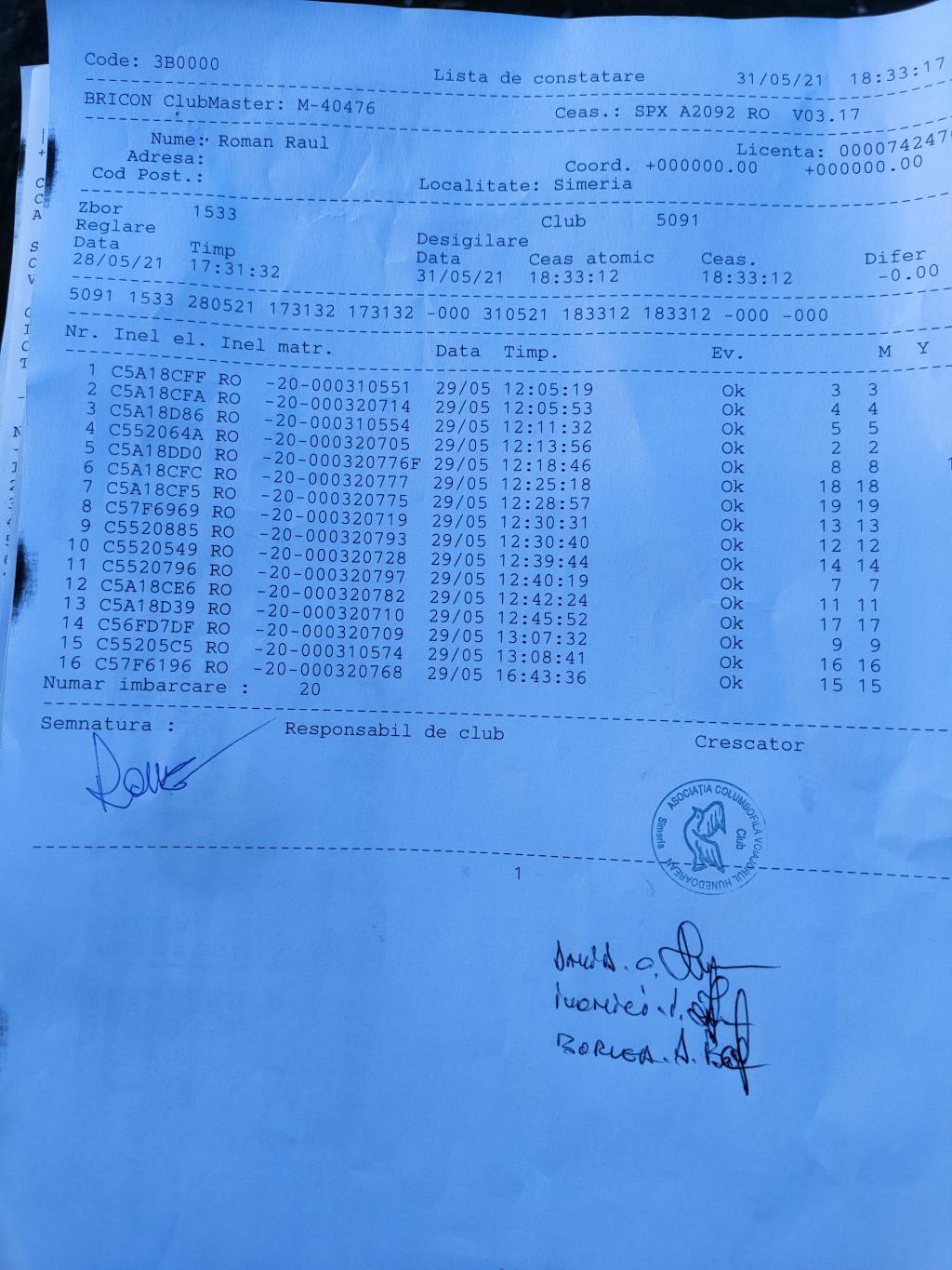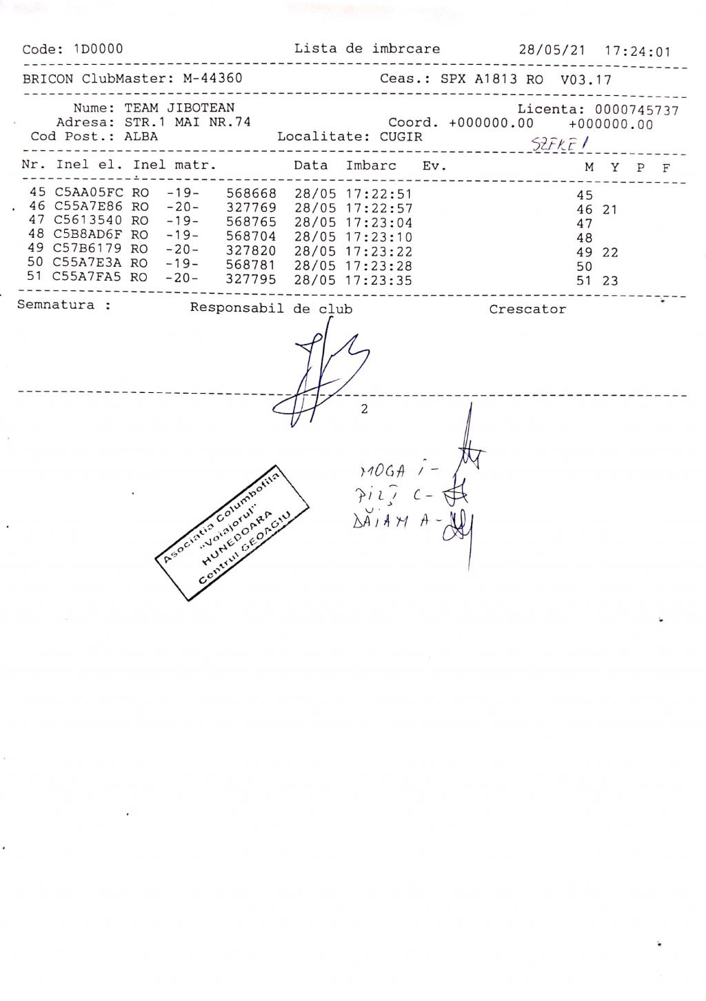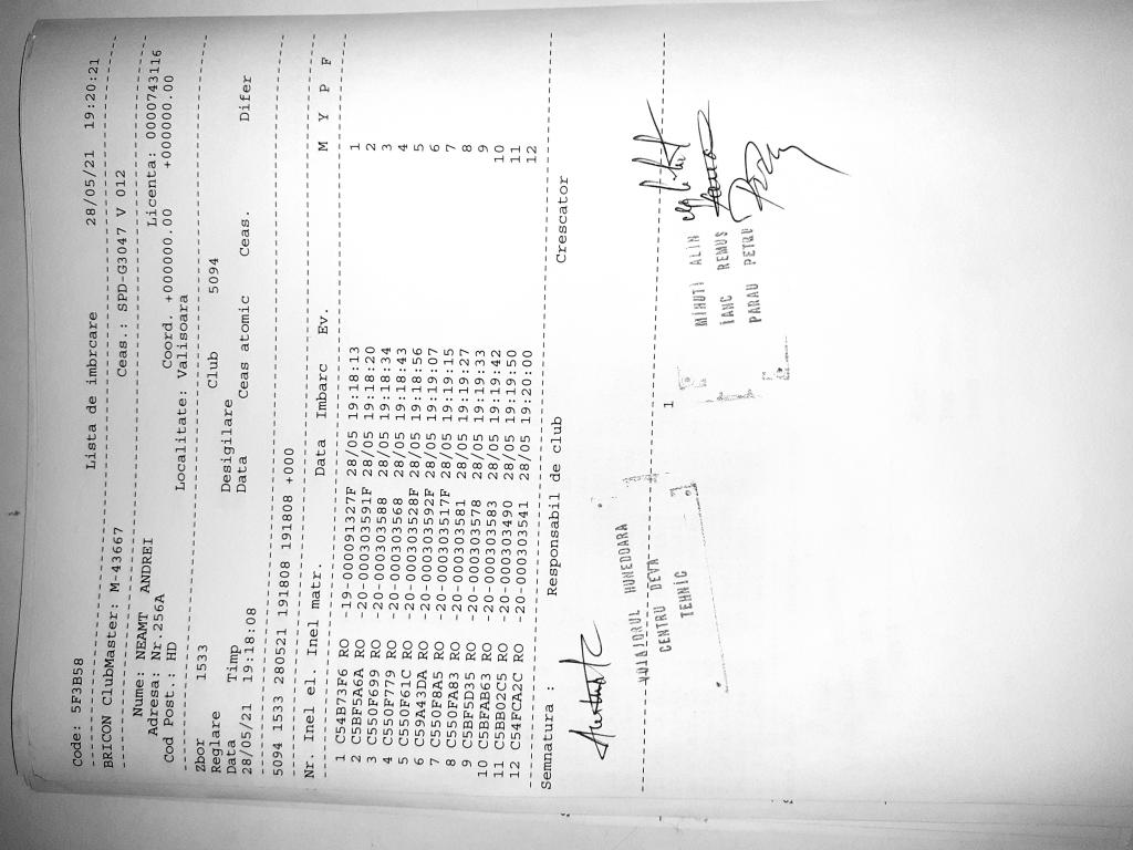 | 1 | Almasan Vasile + Ionut + Alin | HD1009 | BRAD |