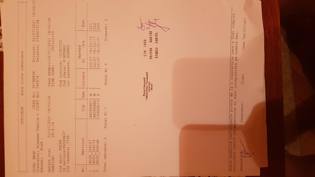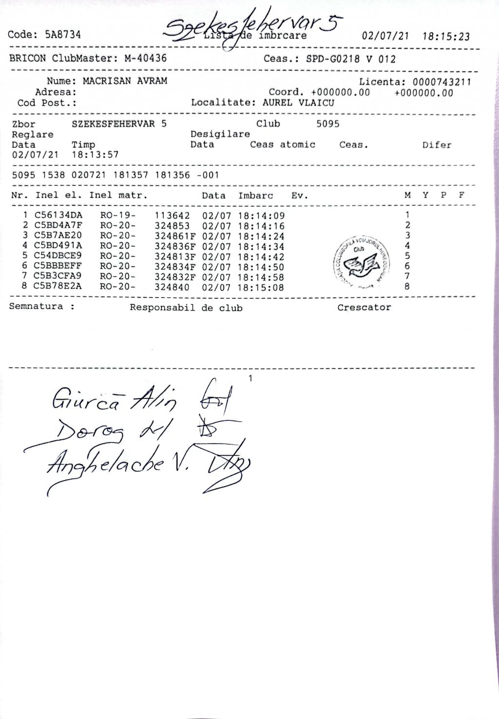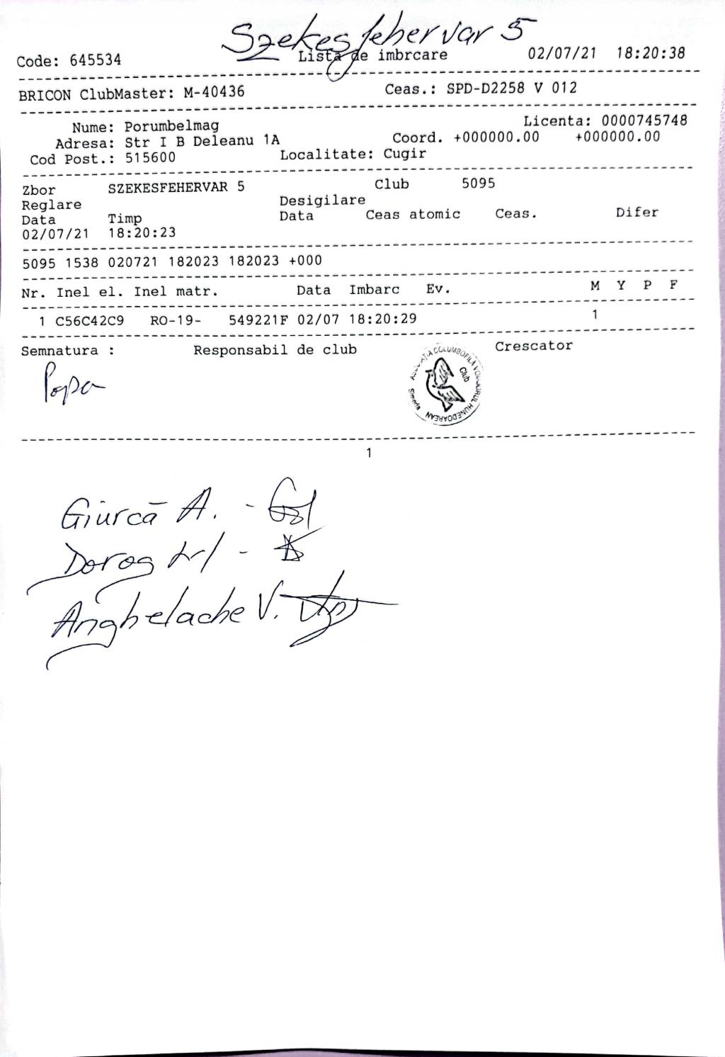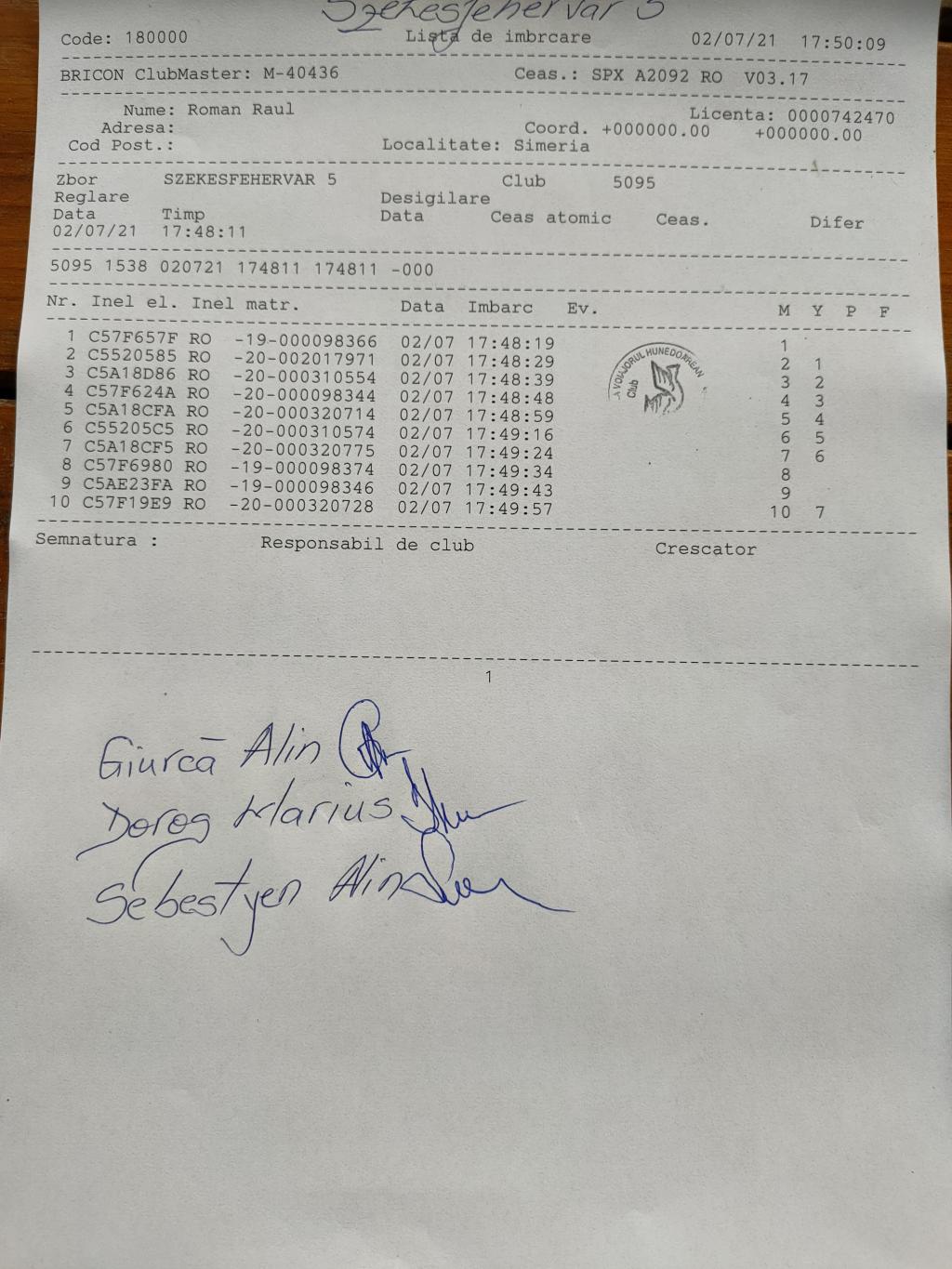 | 1 | Almasan Vasile + Ionut + Alin | HD1009 | BRAD |