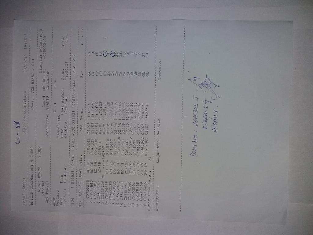 | 55 | Voicila Florin | CV770 | Ozun | [IMB P0] | [DES P0] |