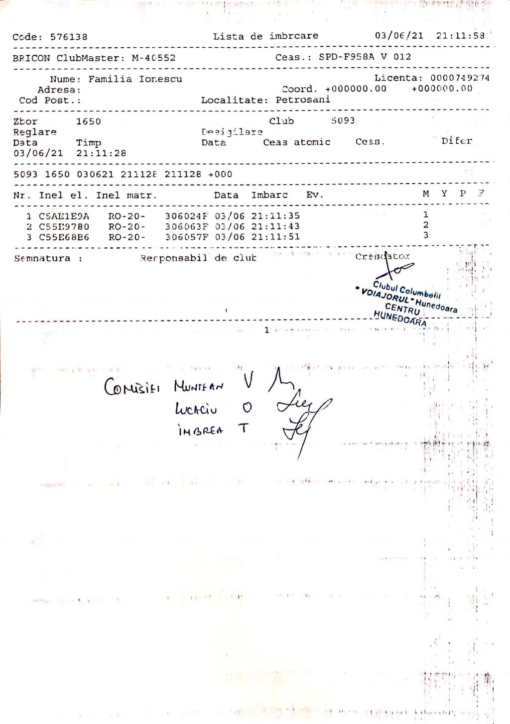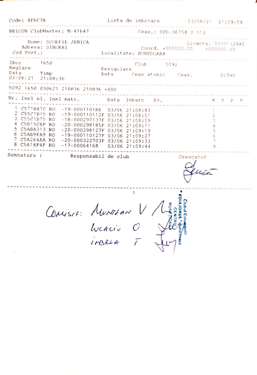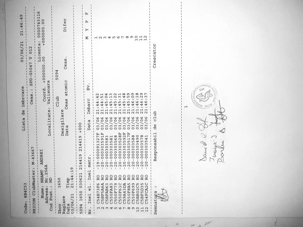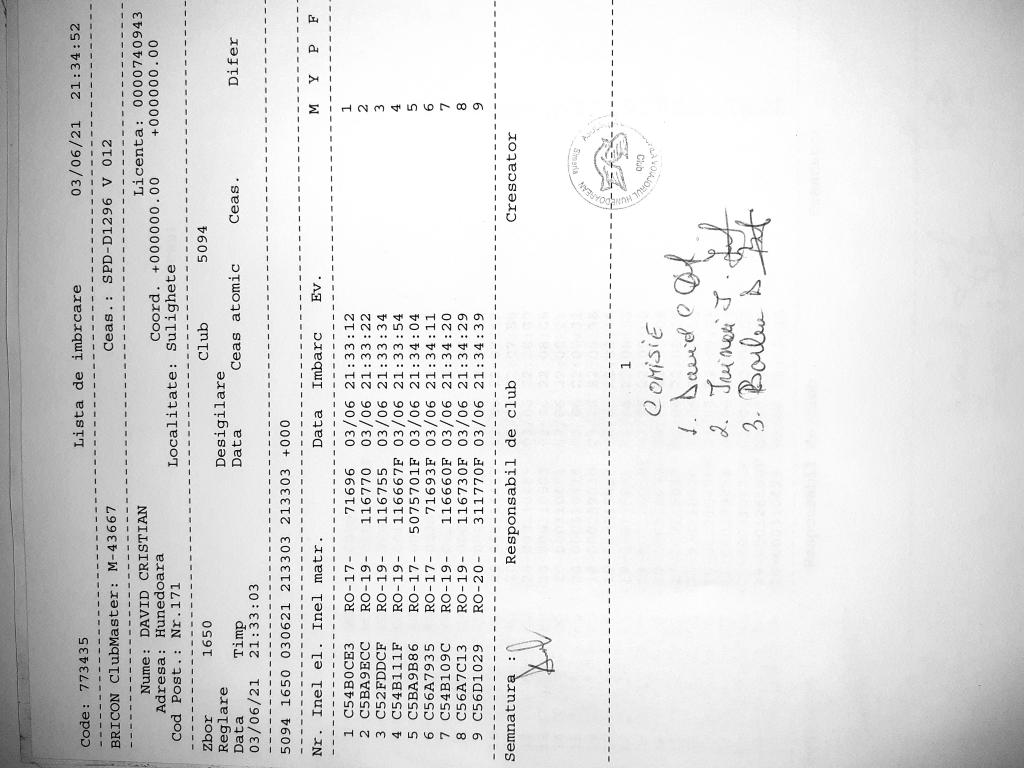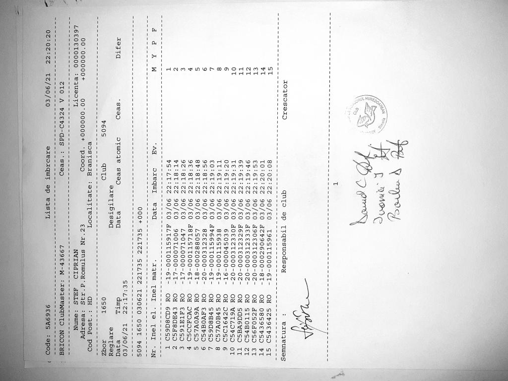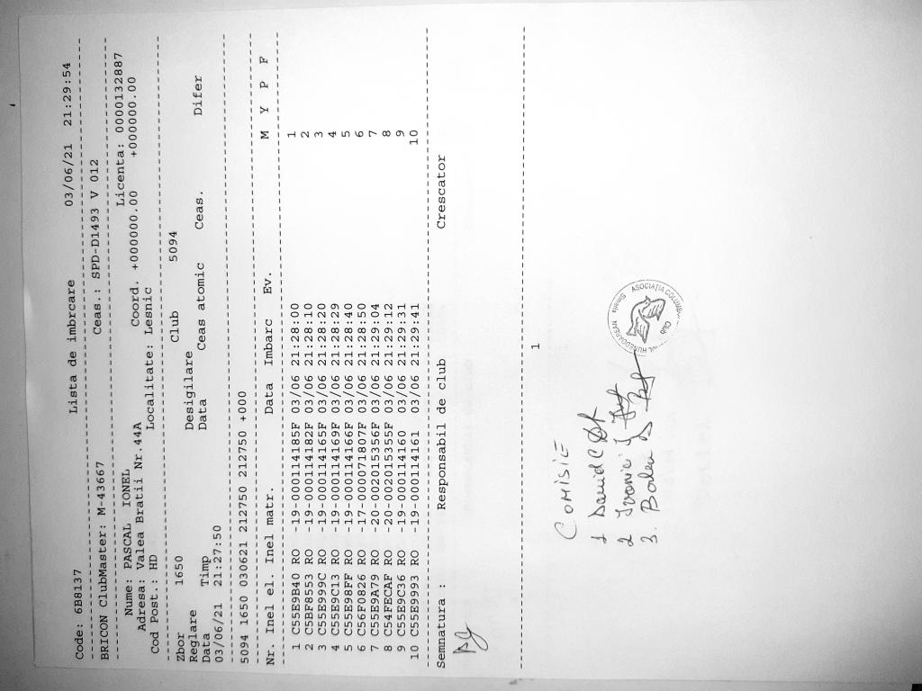 | 1 | Almasan Vasile + Ionut + Alin | HD1009 | BRAD |